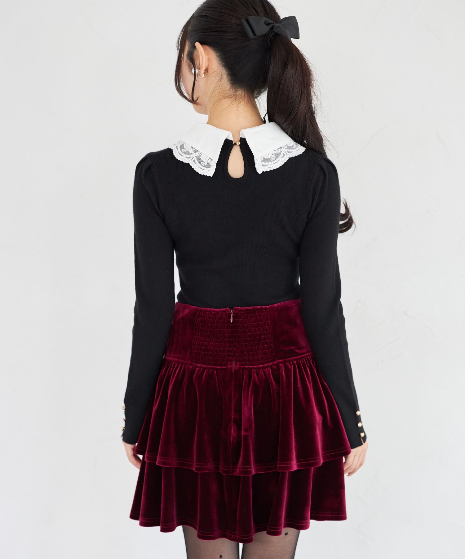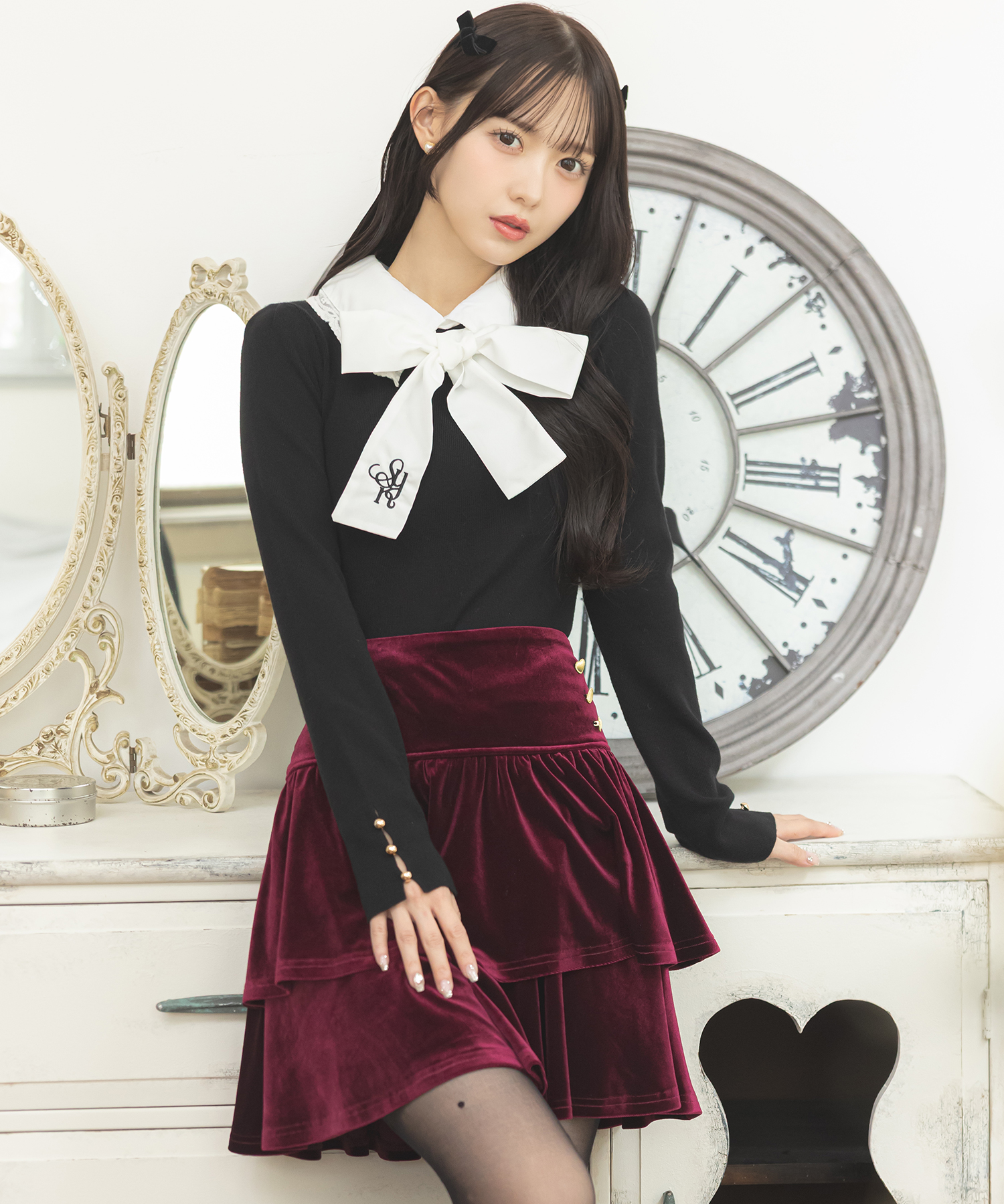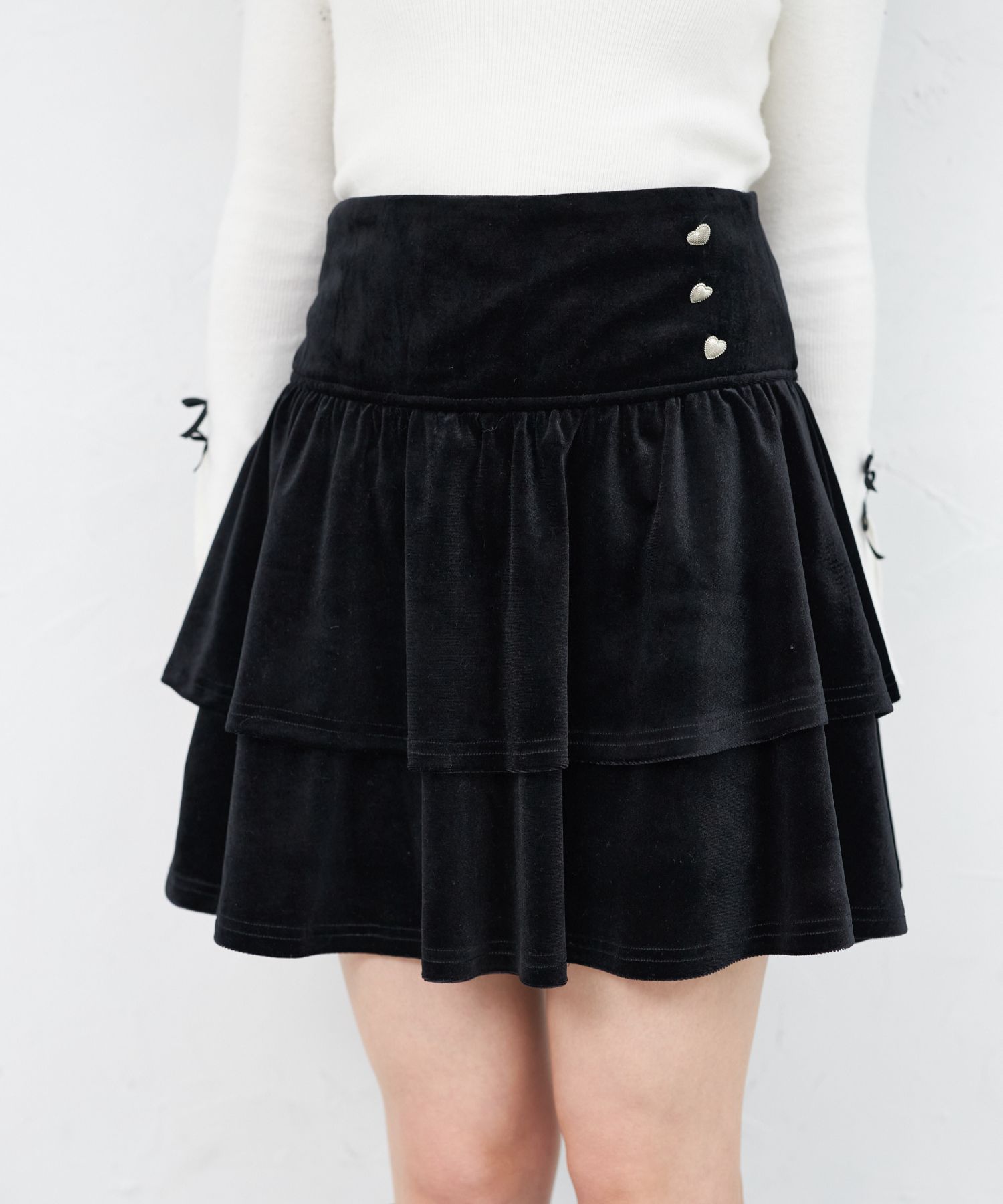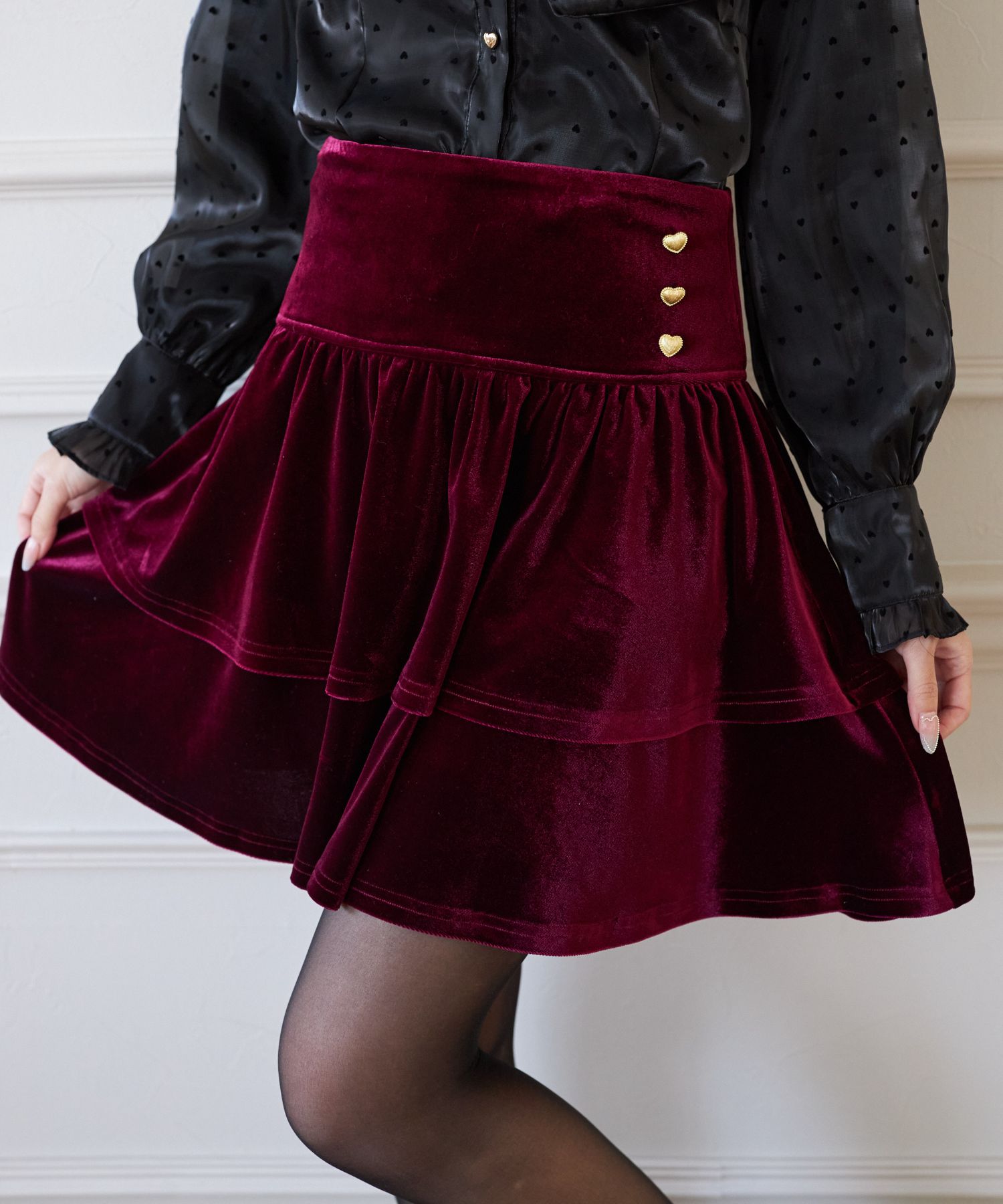2WAYリボンサスペンダー付きインナーパンツ仕様ベロアティアードスカート