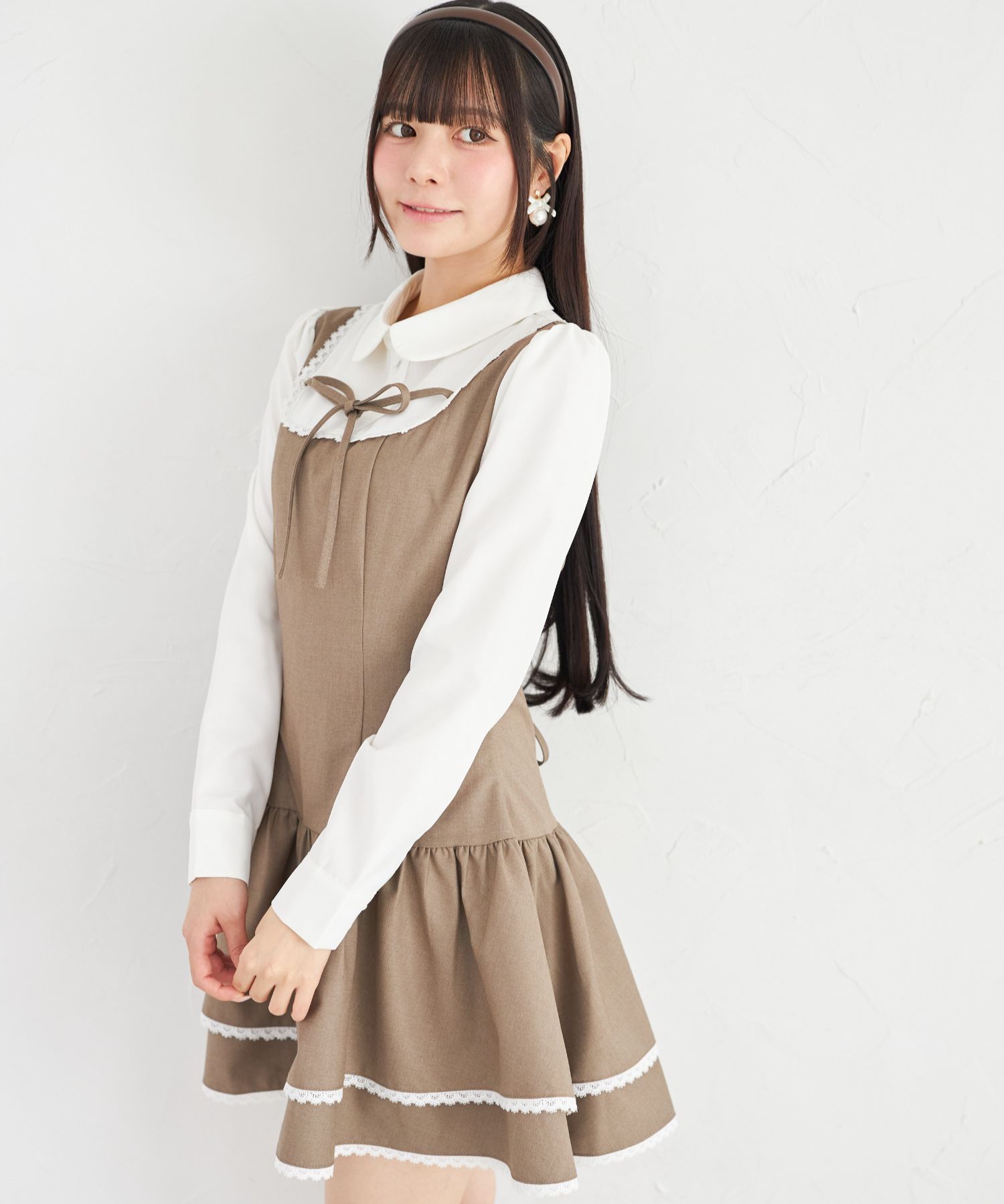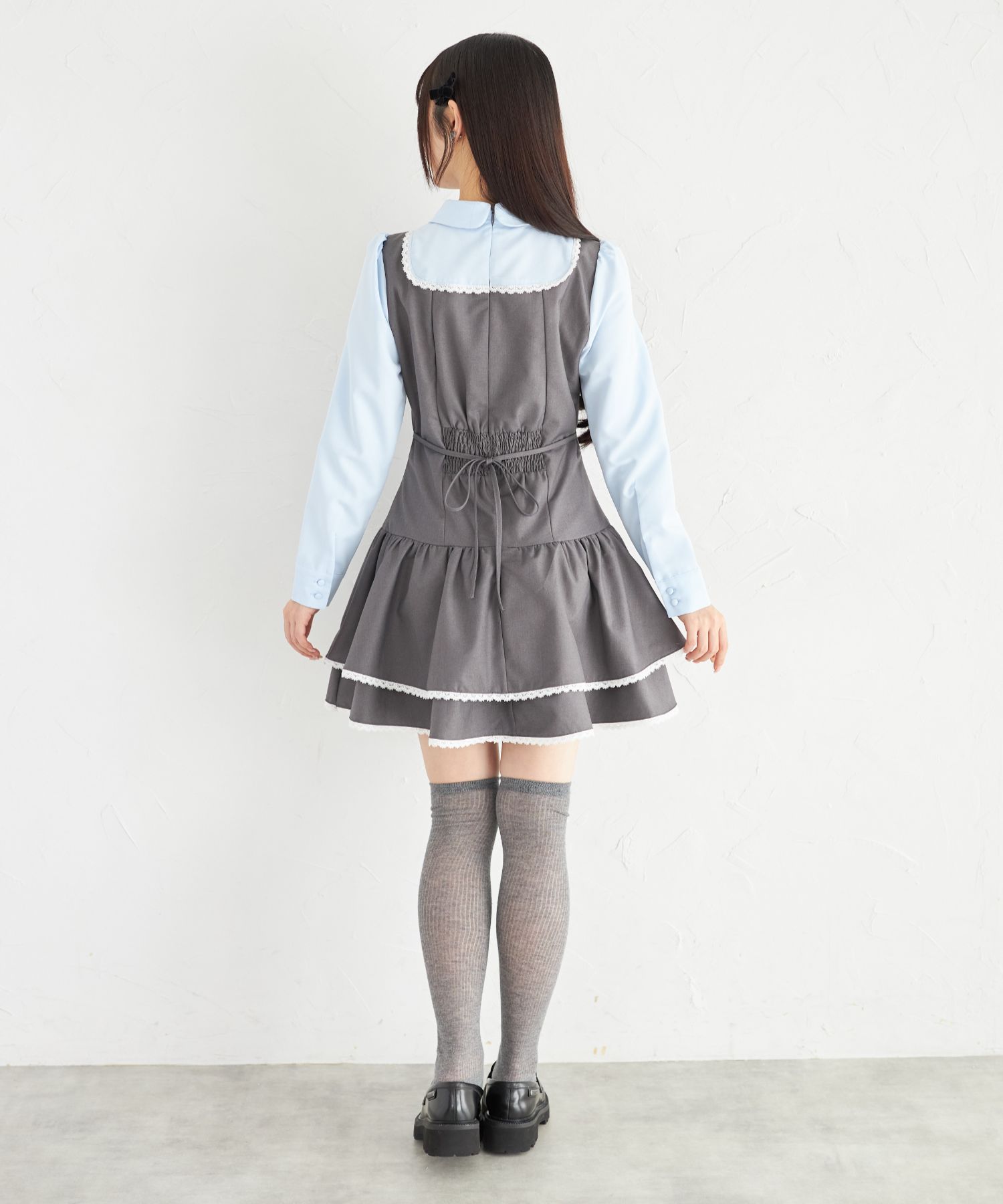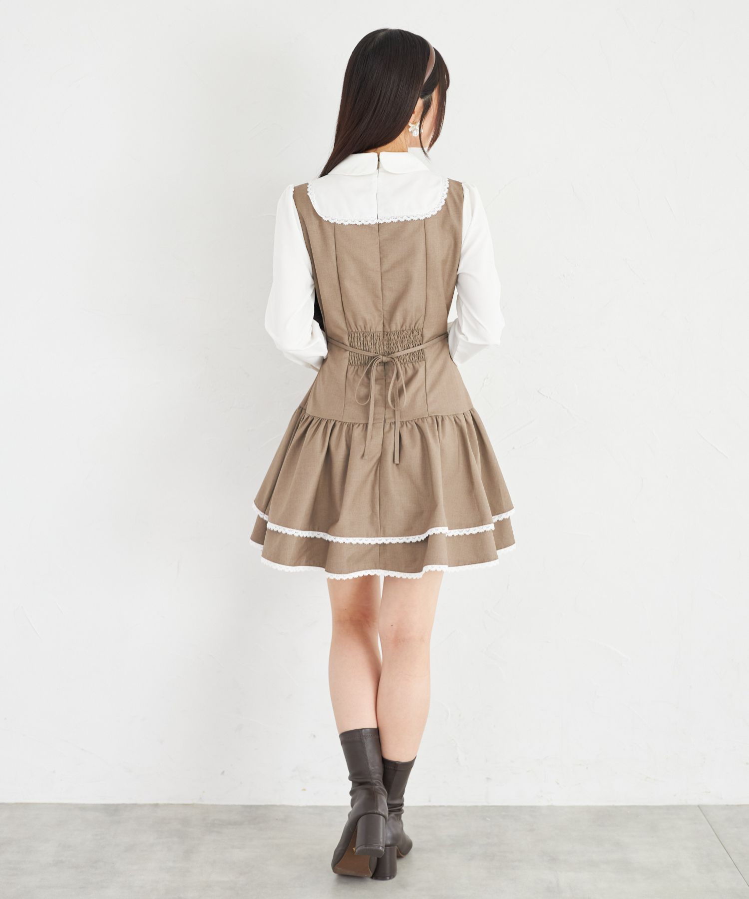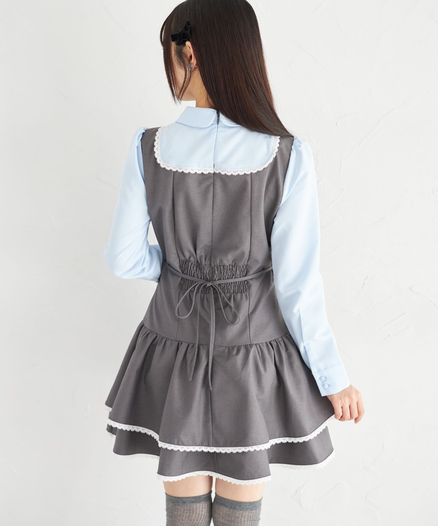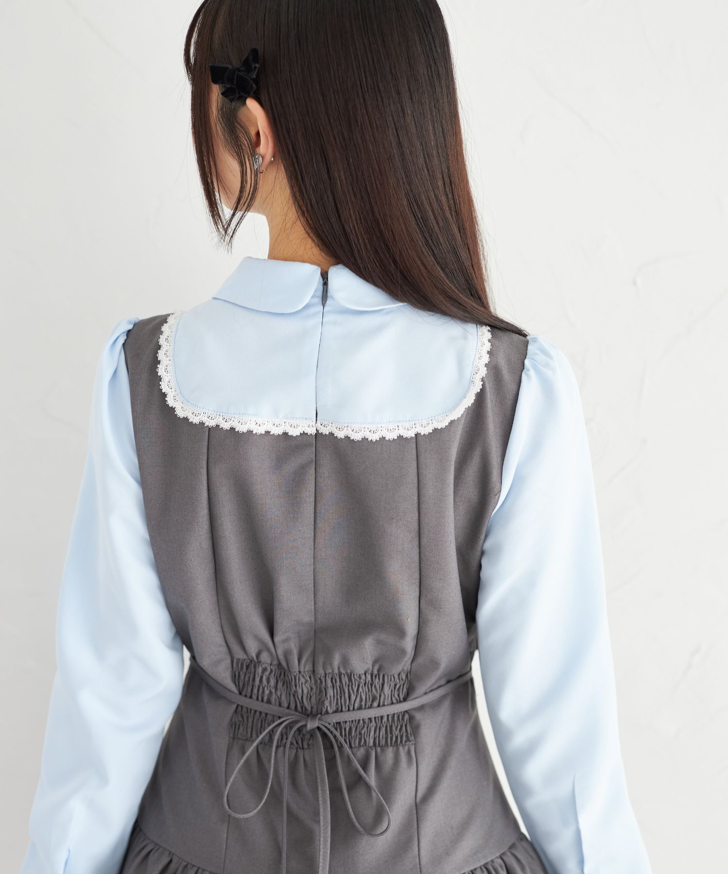 胸元とウエスト後ろにはリボンをあしらい、