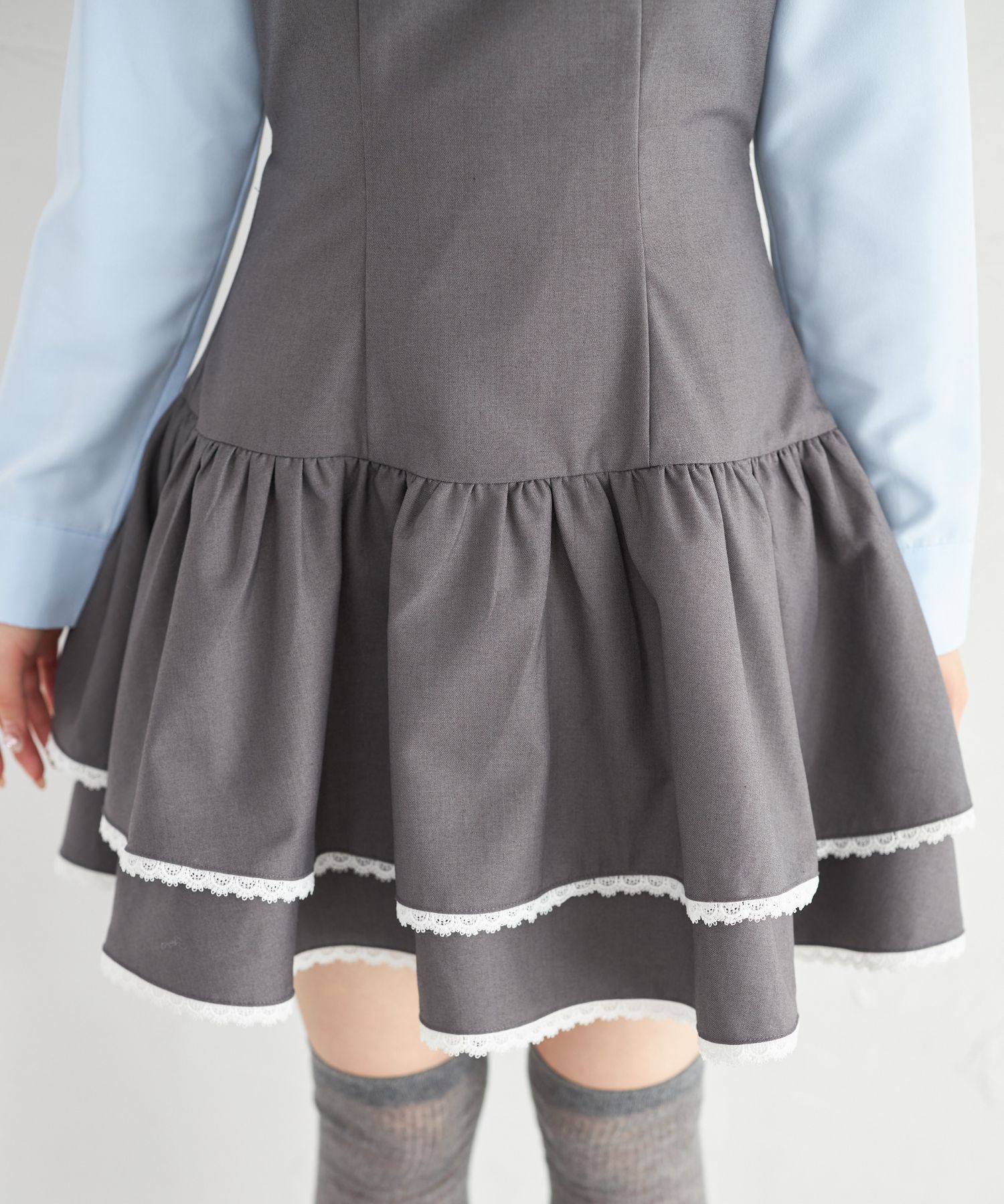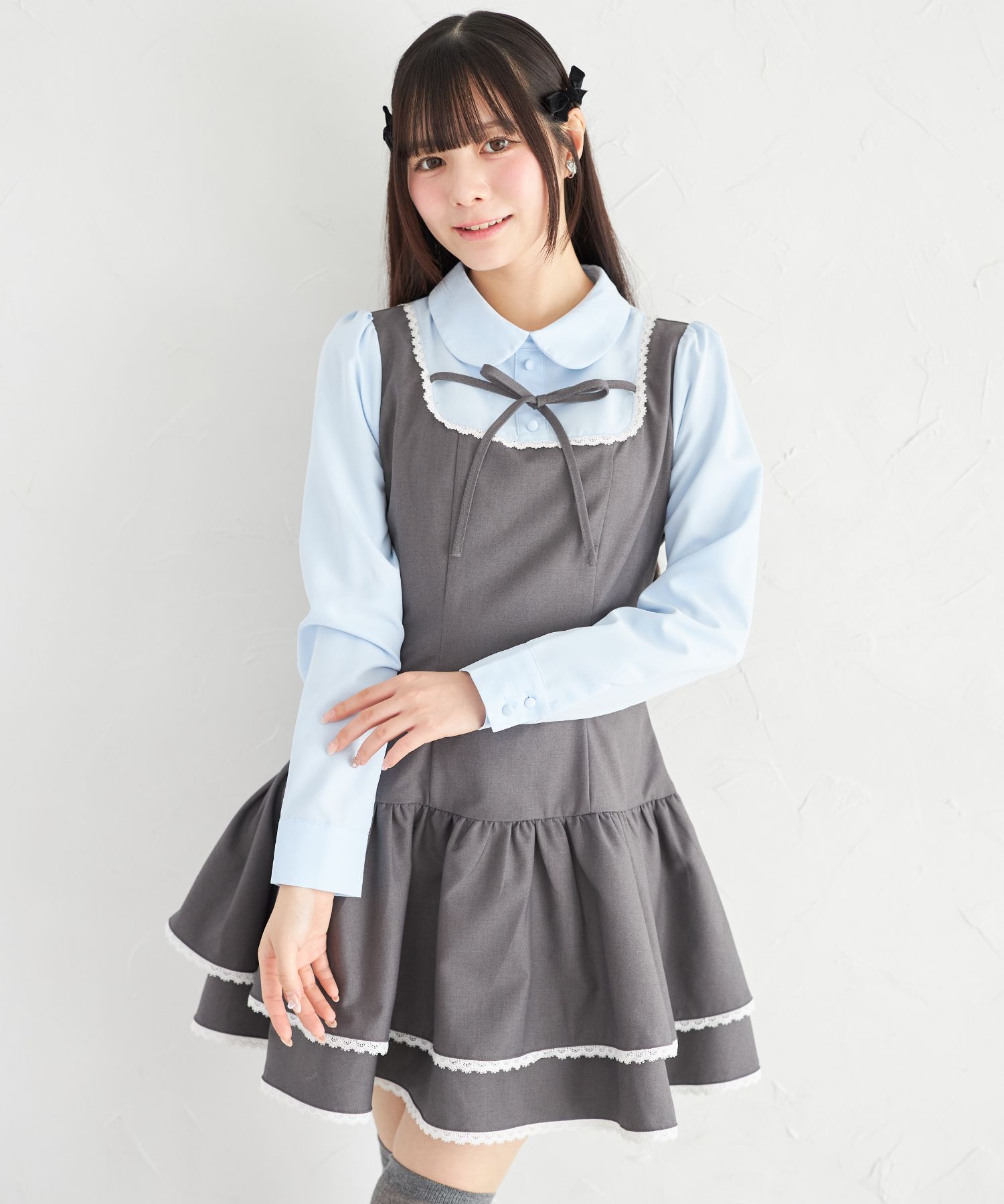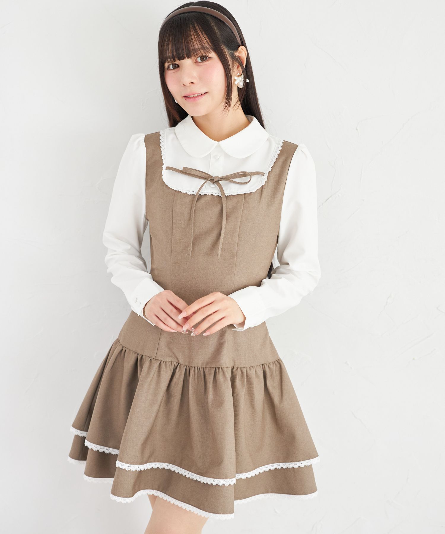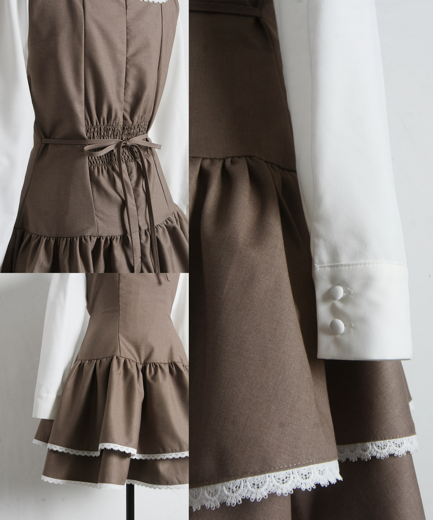 胸元とウエスト後ろにはリボンをあしらい、