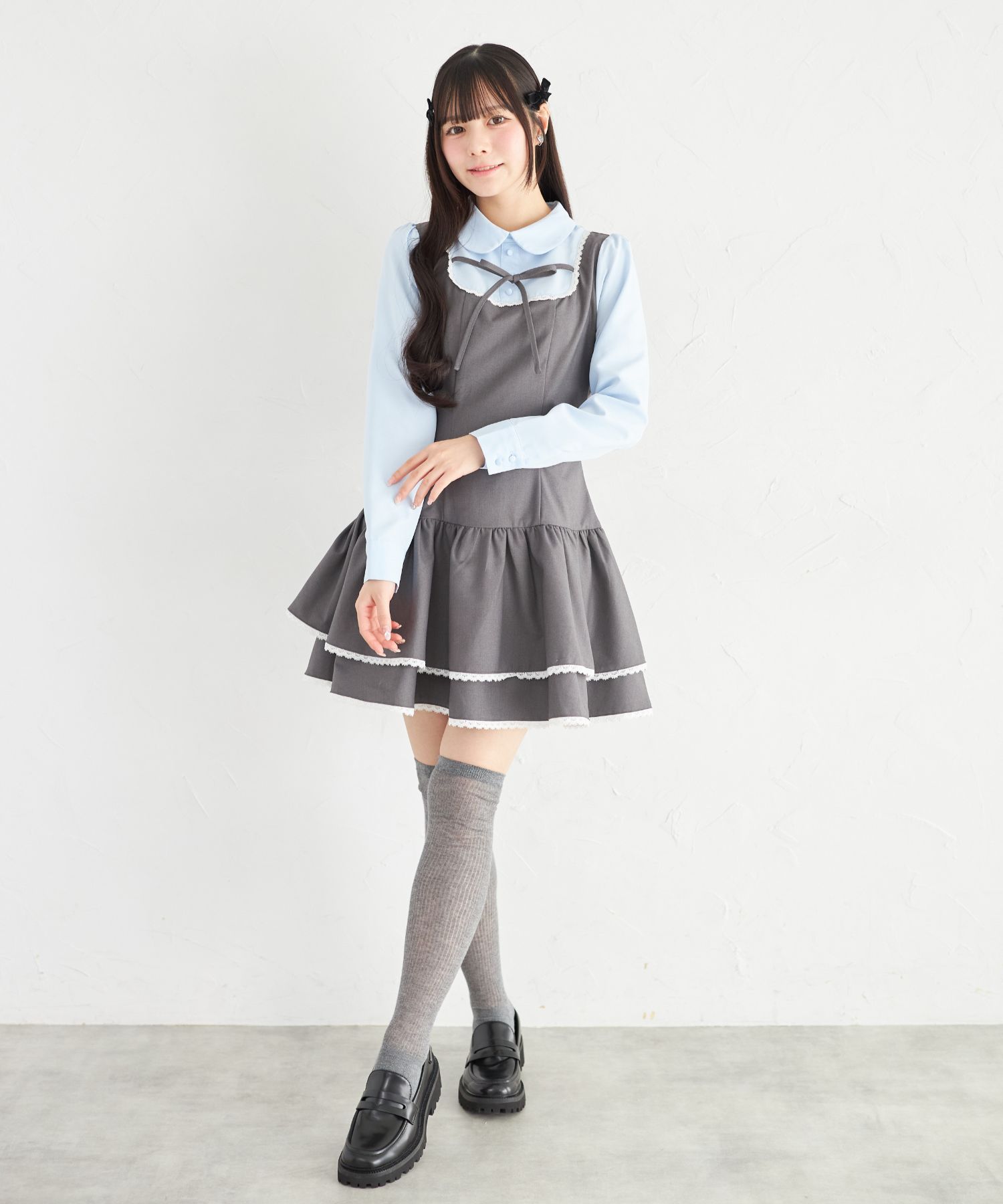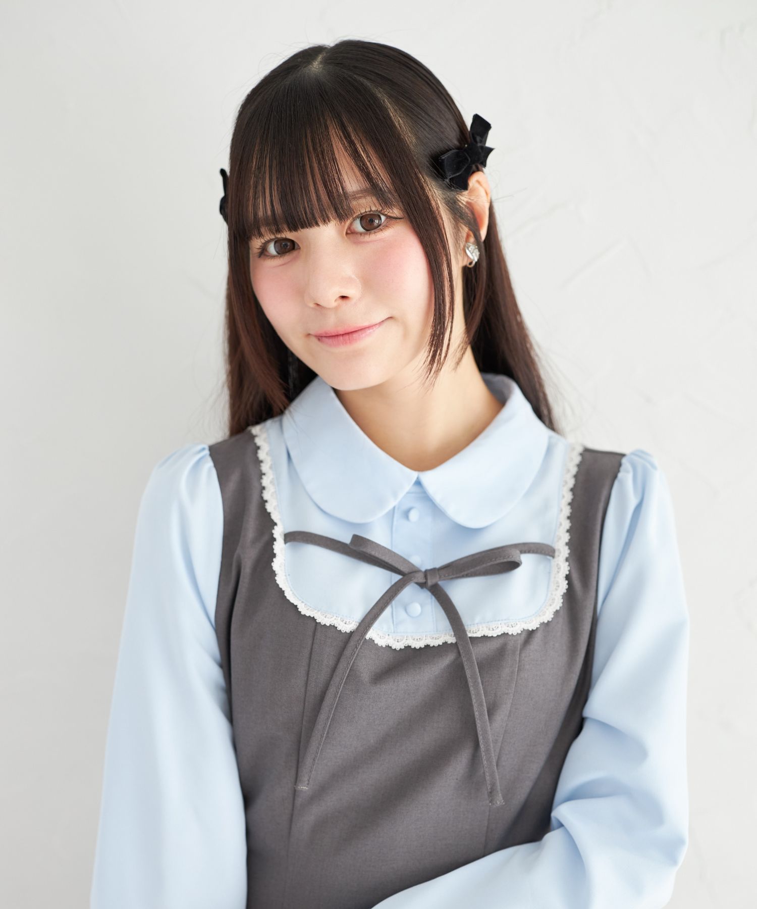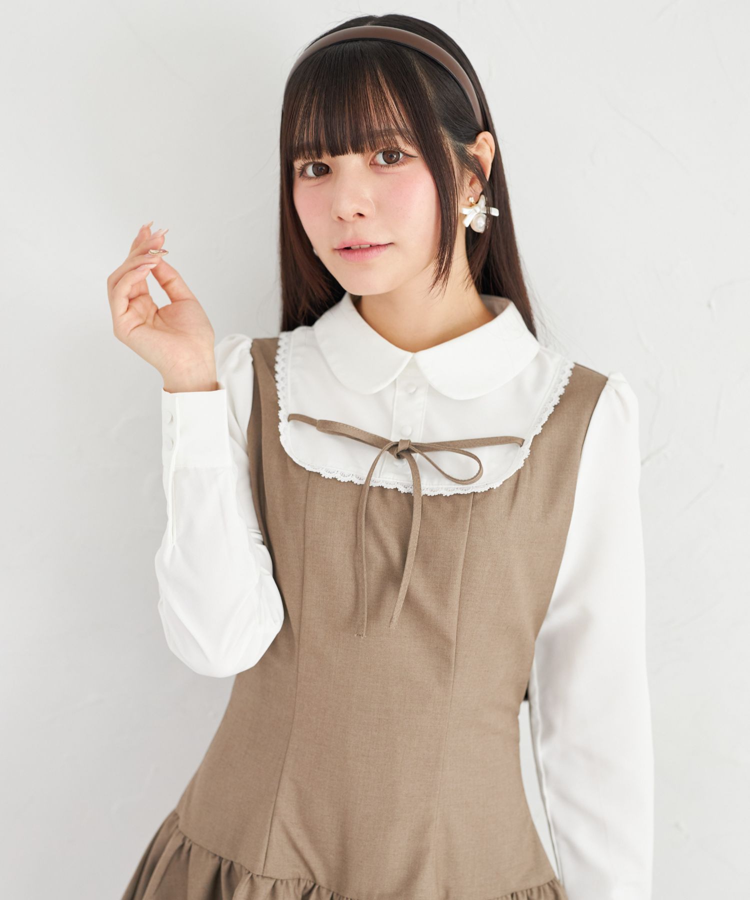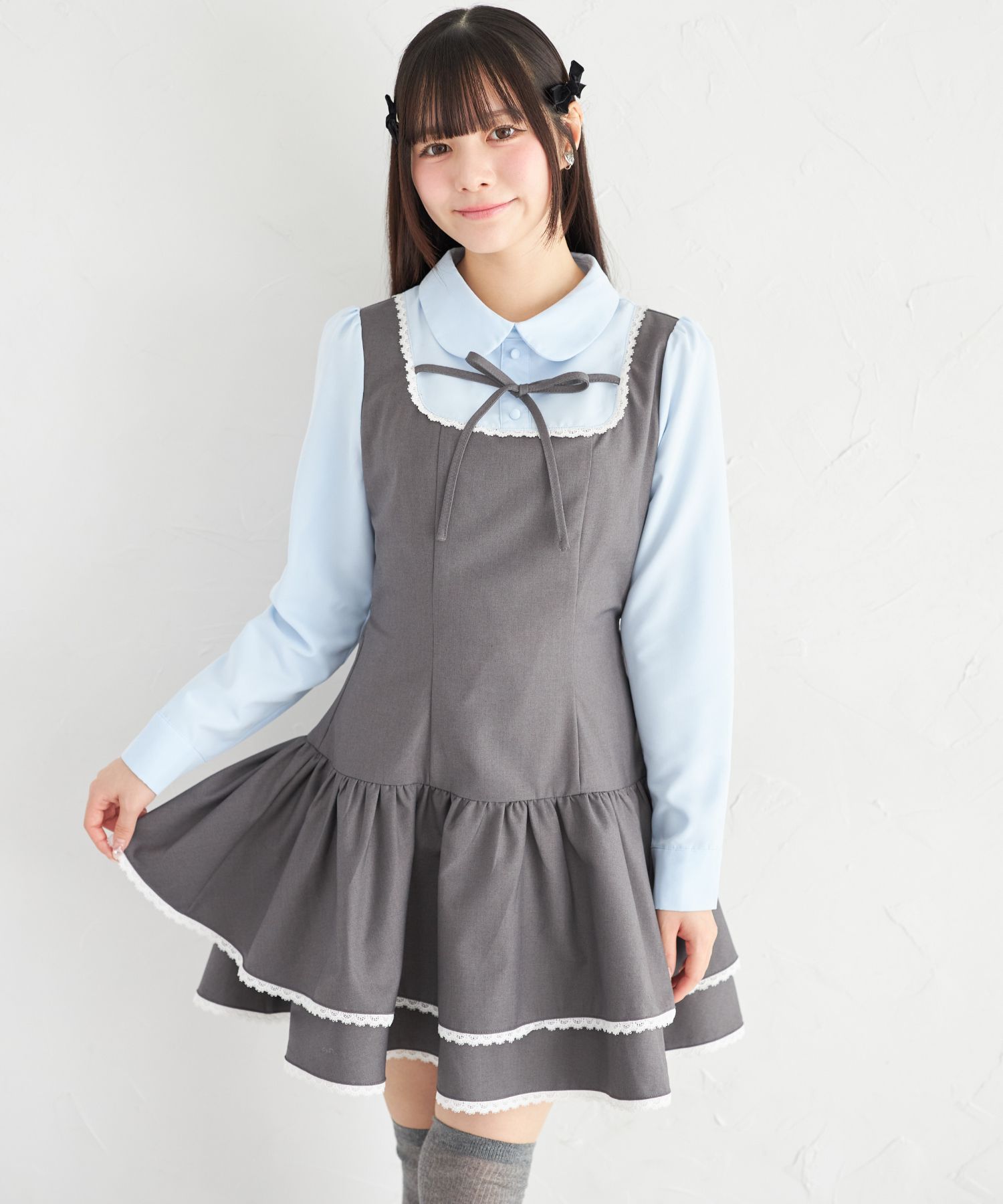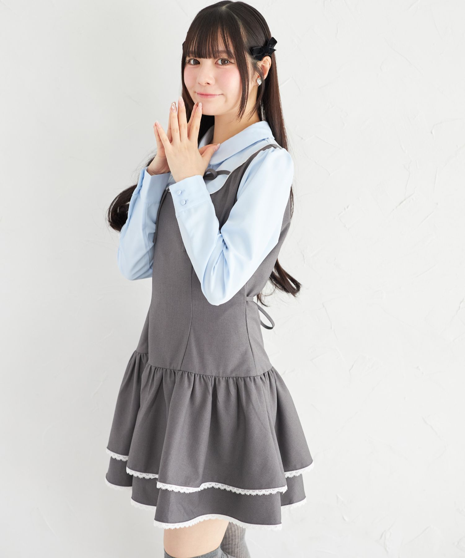 胸元とウエスト後ろにはリボンをあしらい、
