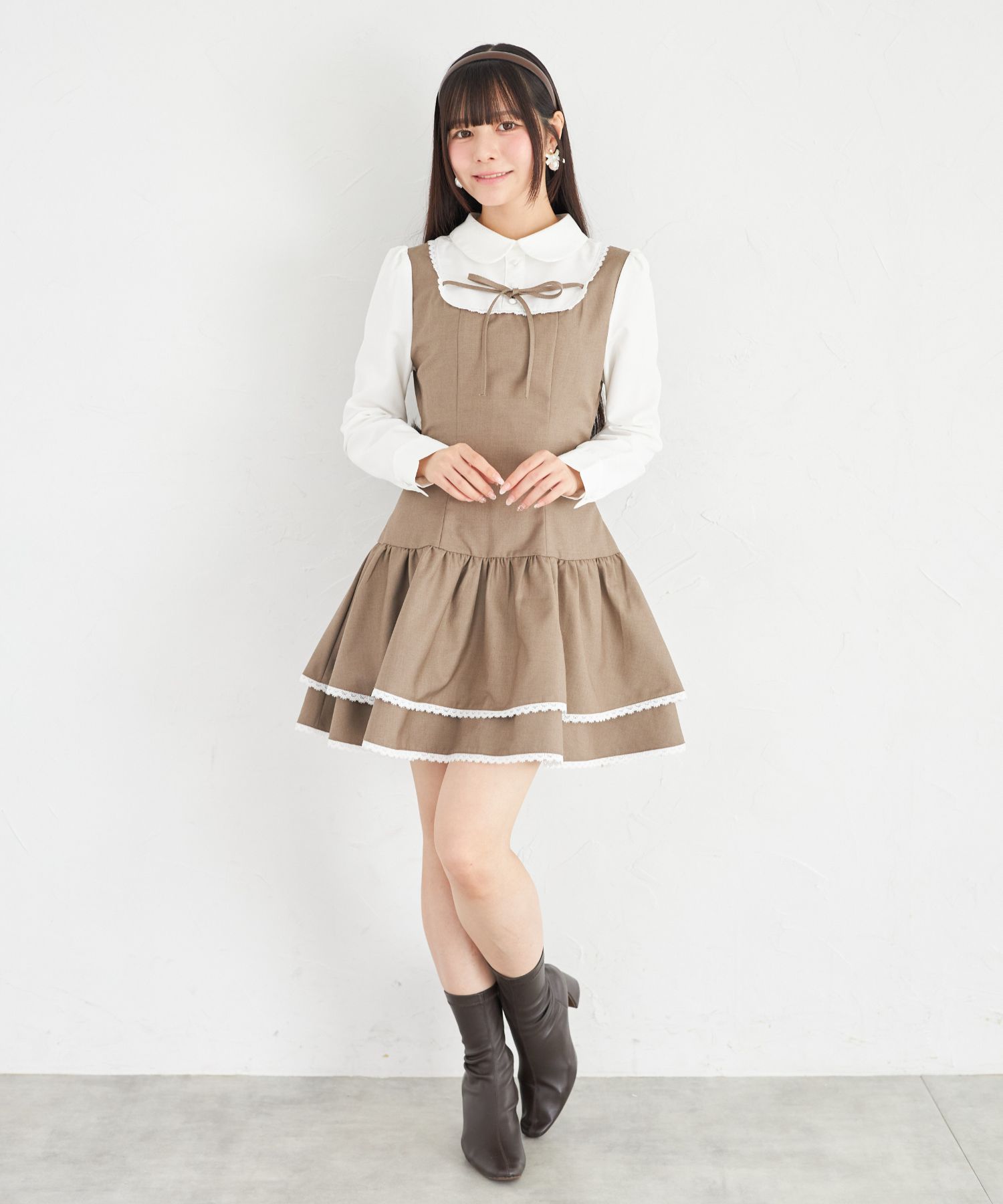 甘すぎないクリーンな知性を演出するワンピース。
