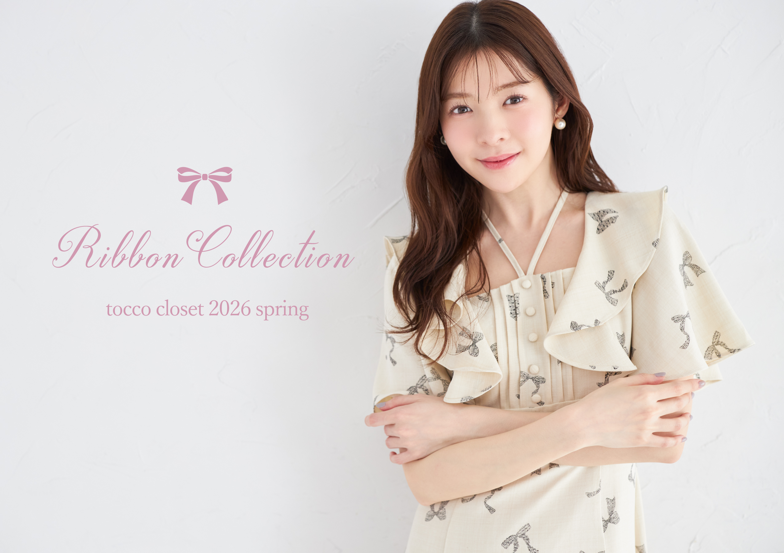 2WAYボウタイリボン付きリボンプリントシャーリングプリーツワンピース 新色グレイッシュピンク、サックス登場☆ tocco closet(トッコクローゼット)《RibbonCollection》※鈴木ゆうかさんはモカピンク着用