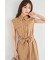 ウエストリボン付きゴールドボタン綿麻タッチシャツワンピース