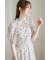 リボン付きオープンデコルテシャーリングフラワートワルドジュイプリントワンピース
