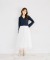 光のベールを纏ったような美しさで魅了するスカート。 スパンコールをミックスしたレース生地をライン状に切り替え、 軽やかなチュール生地を重ねました♪ 動くたびにキラキラと上品な煌めきを放ち、 コーデにドラマティックな華やかさをプラスしてくれます。 ヘルシーな肌見せができるミモレ丈を採用し、 裾の透け感でエアリーな透明感のある洒落感に◎ ウエストはプチフリル付きのゴム仕様で 可愛くリラクシーに着用できるのも嬉しいポイント。 |