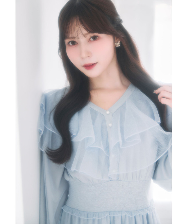 パール装飾サイドリボン付きラッフルフリルブラウス ¥5,390