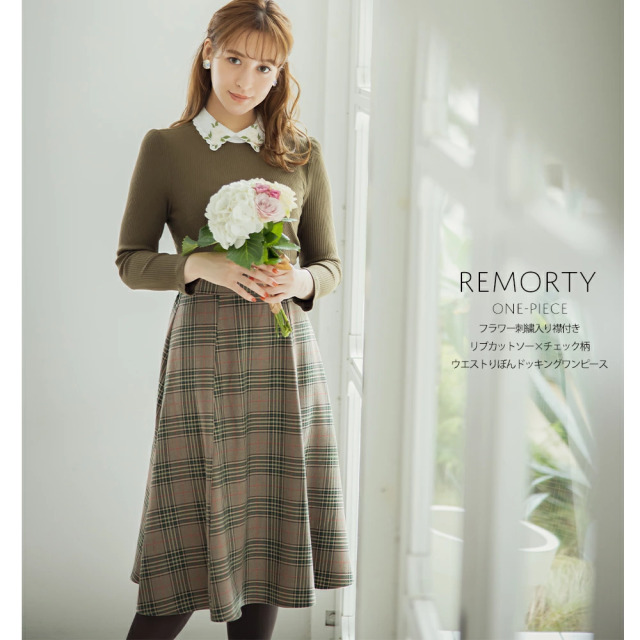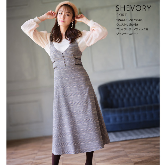 | ウエストりぼん付き フェイクレザー×チェック柄ジャンパースカート価格 3,900円(税別) |