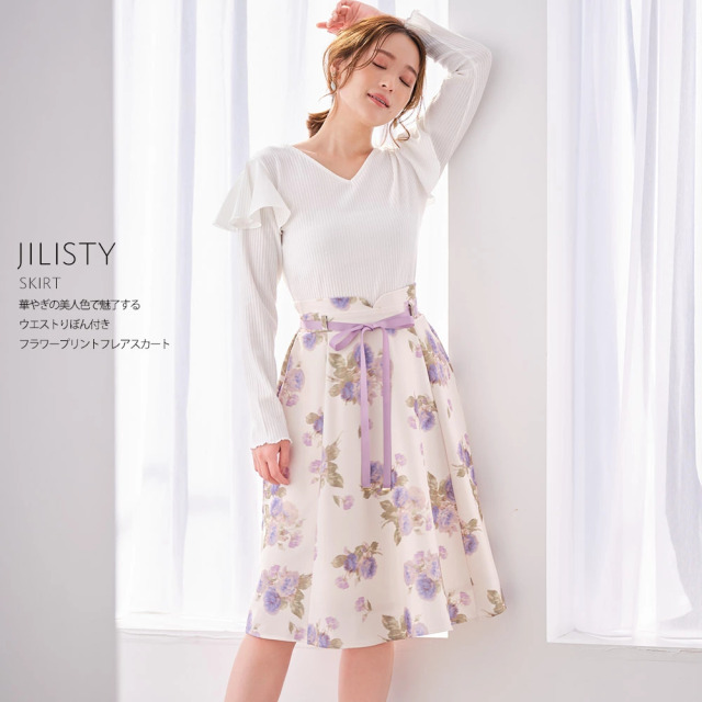 ウエストりぼん付きフロントタック シャーリングフラワープリントワンピース価格 4,900円(税別) |