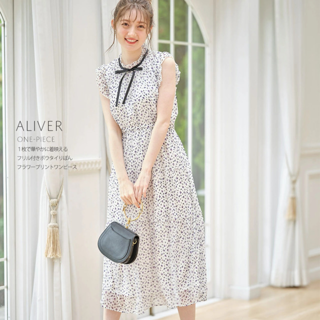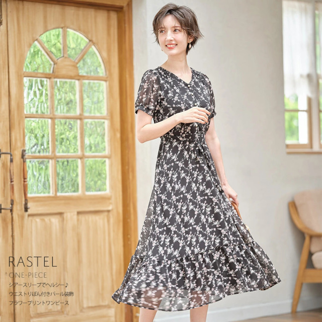 ウエストりぼん付き フラワープリントワンピース¥5,390 |