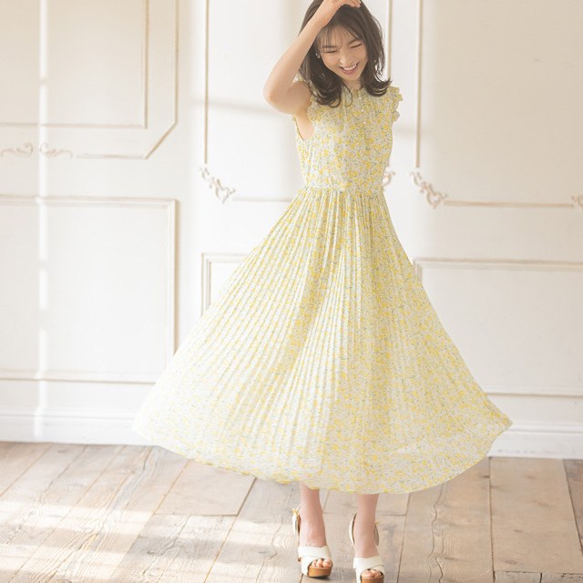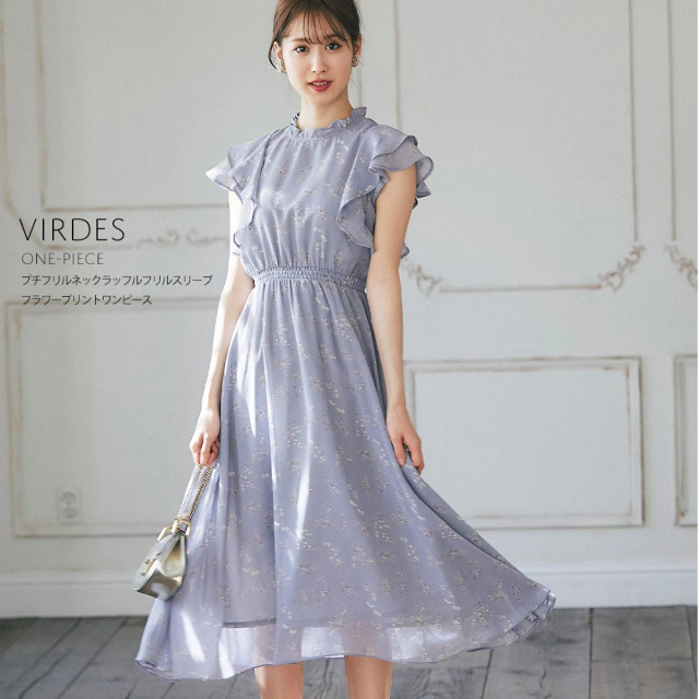| プチフリルネックラッフルフリルスリーブ フラワープリントワンピース¥4,290 |
