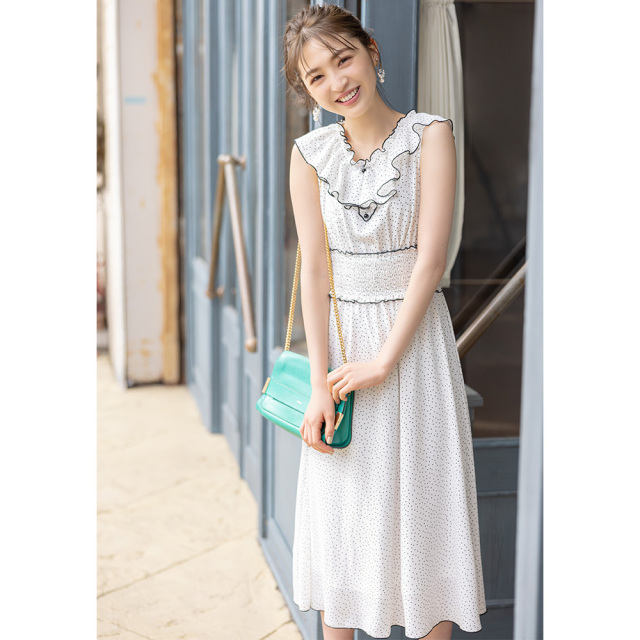 | りぼん付きプチフリルネック 楊柳シフォンワンピース¥5,390 |