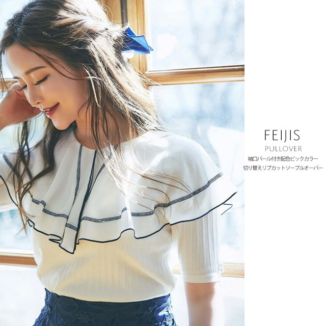 袖口パール付き配色ビックカラー切り替え リブカットソープルオーバー¥4,620 |