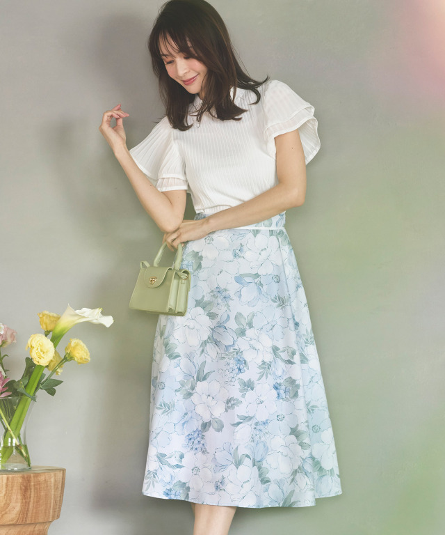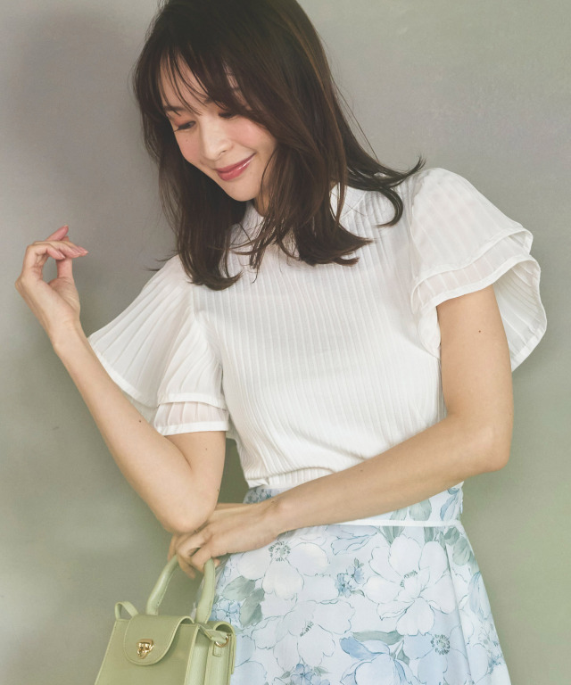 シフォンプリーツスリーブ切り替えリブカットプルオーバー