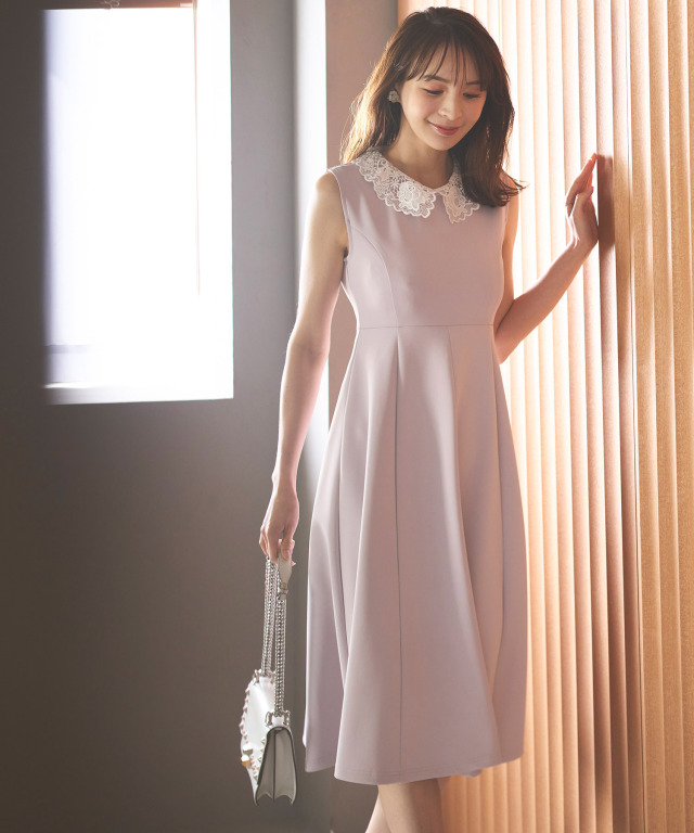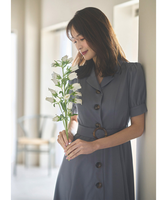 シアーラッフルスリーブ切り替えウエストタックワンピース