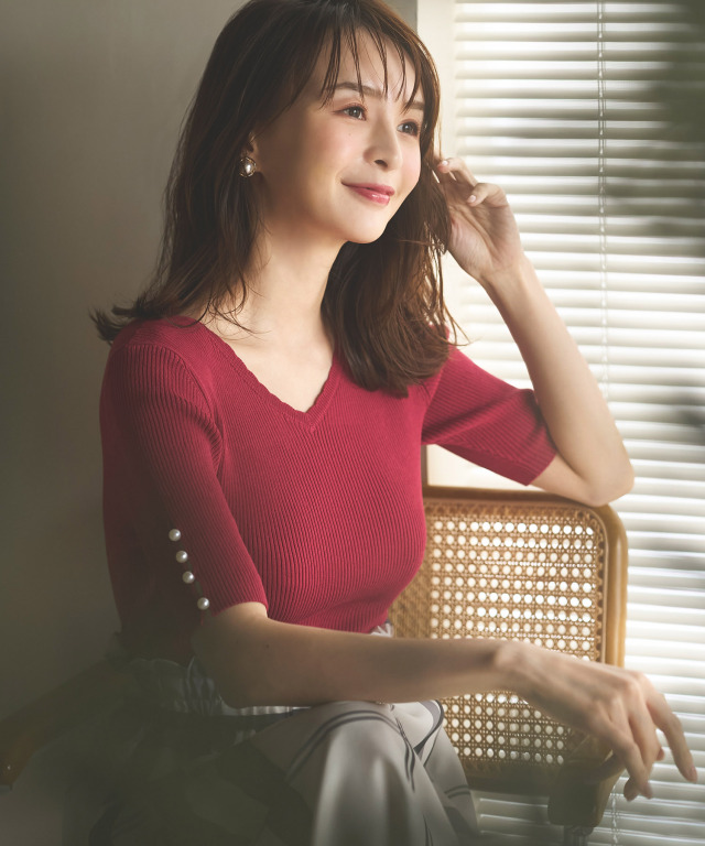 前後2WAY袖口パール付きシャリ感リブニットプルオーバー