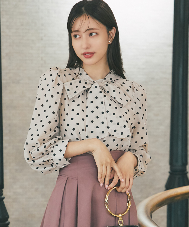 パール釦ドットブラウス