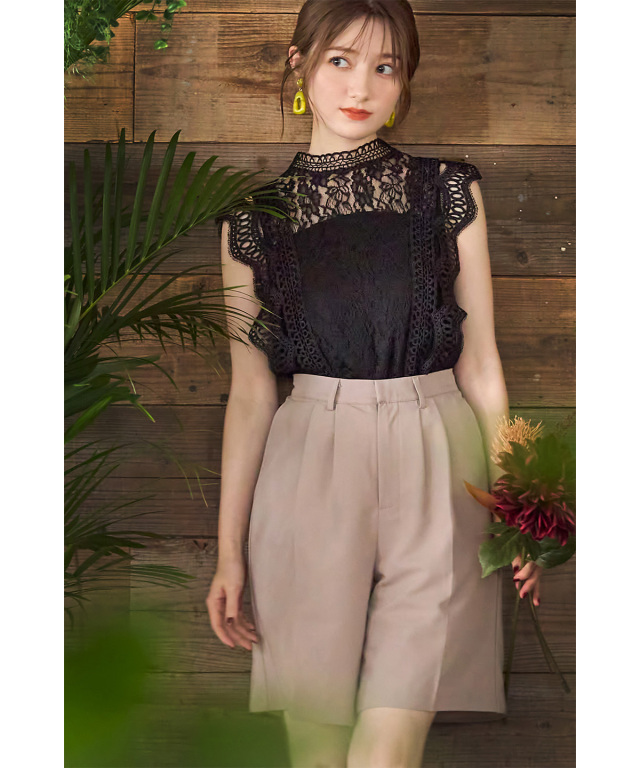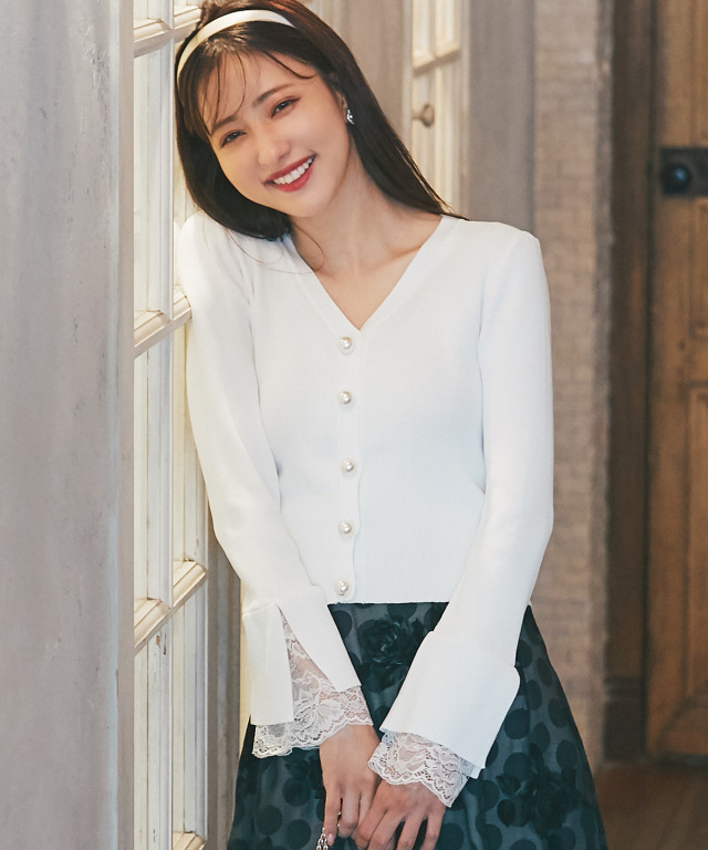 袖口レース切り替えパール釦