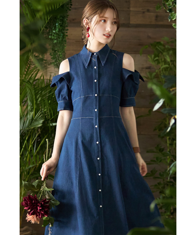バックレースアップデニムシャツワンピース