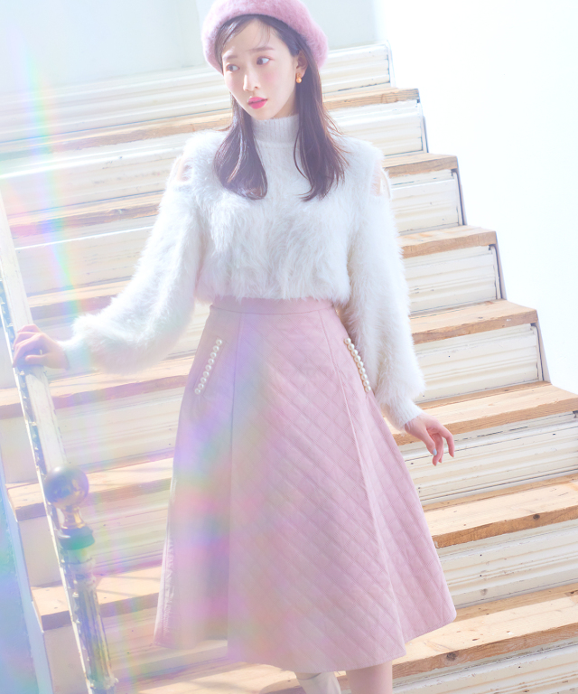 パール付きエンボスキルティングタックフレアスカート ¥4,950