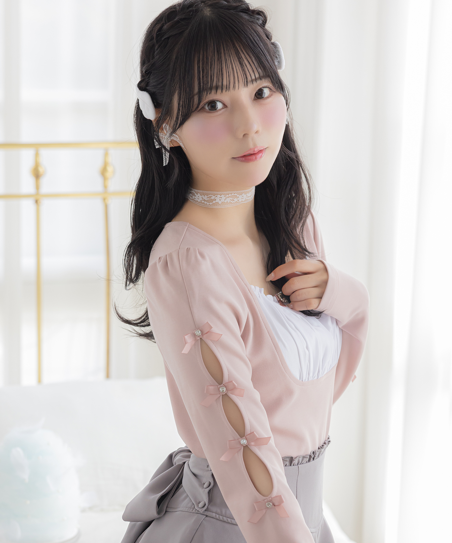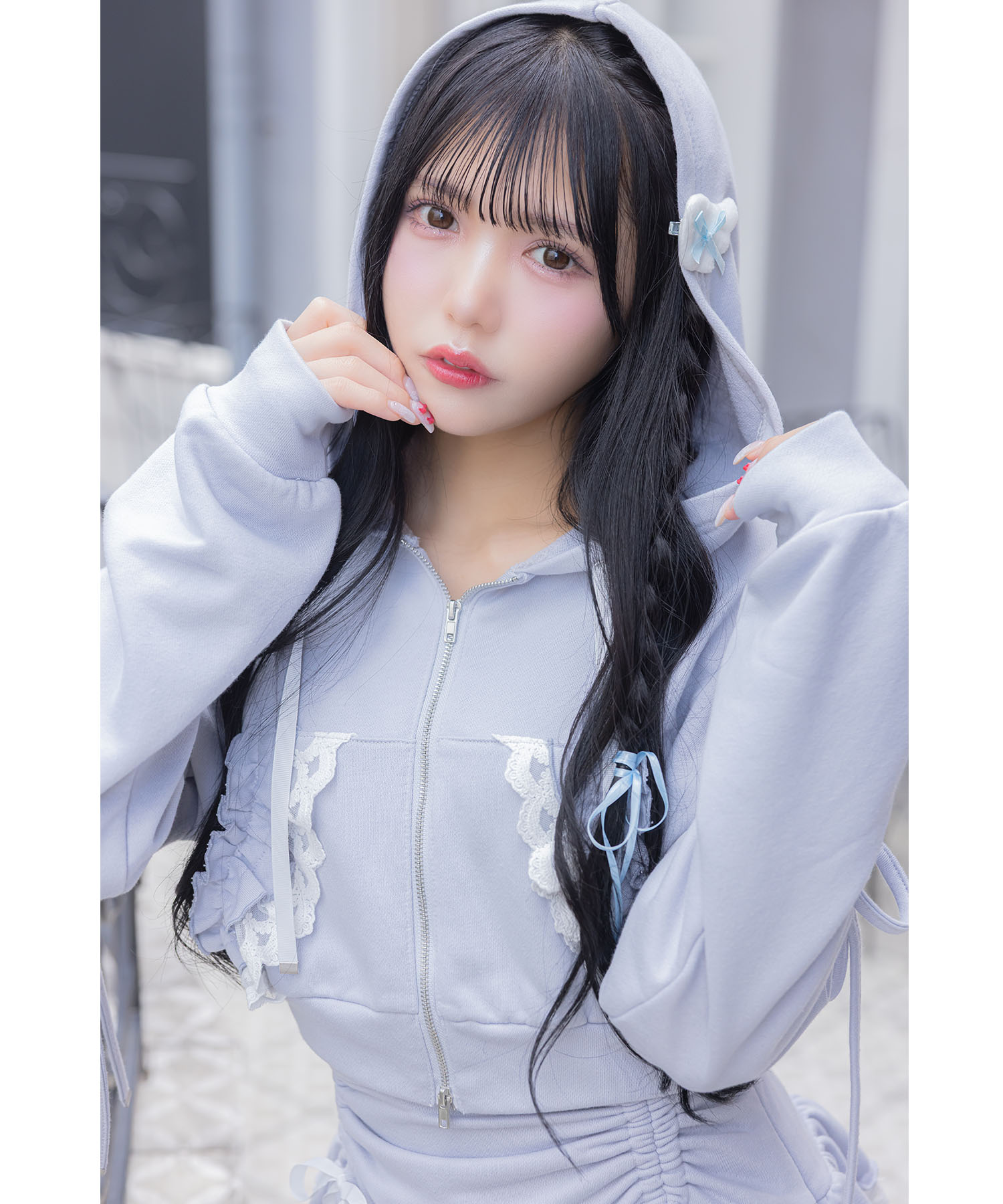 リボン付きレースフリルパーカー