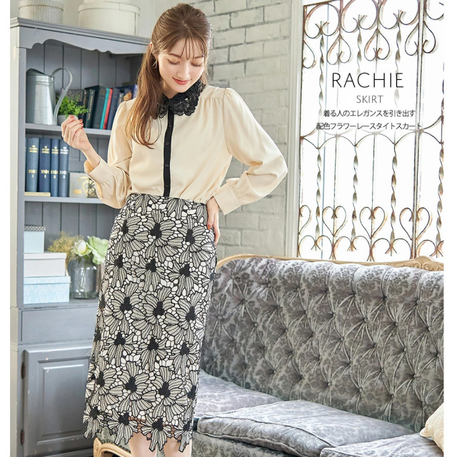 大人気の配色フラワーレースタイトスカートに
