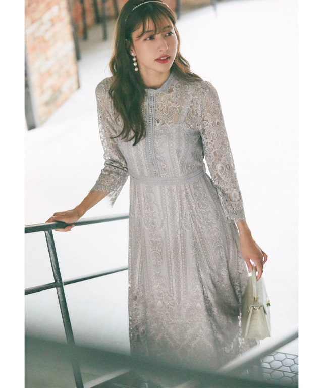 裾スカラップカットパネルレース×