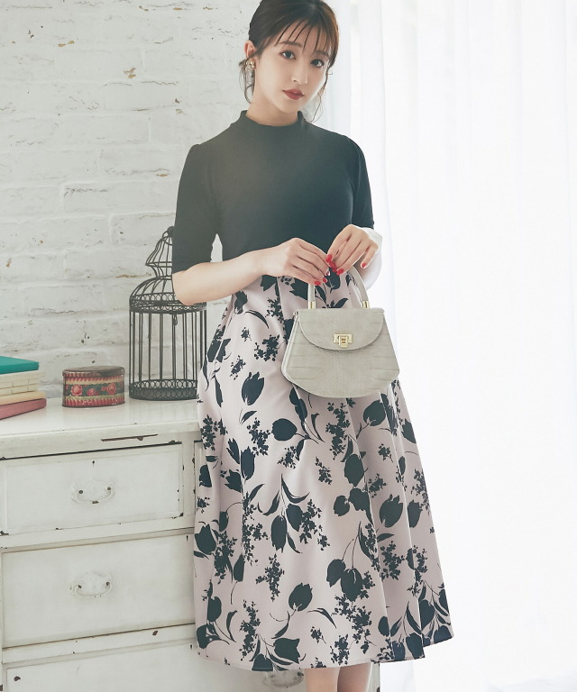 ボウタイリボン付き裾切り替え
