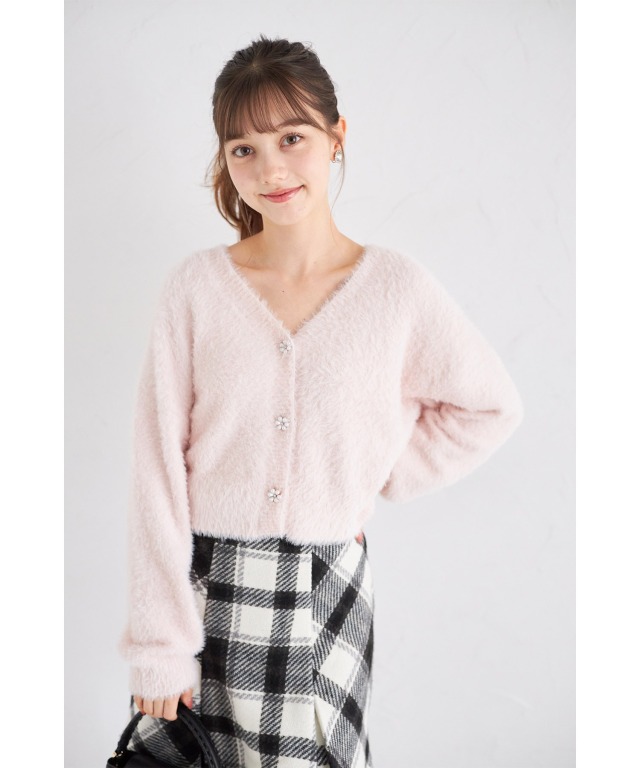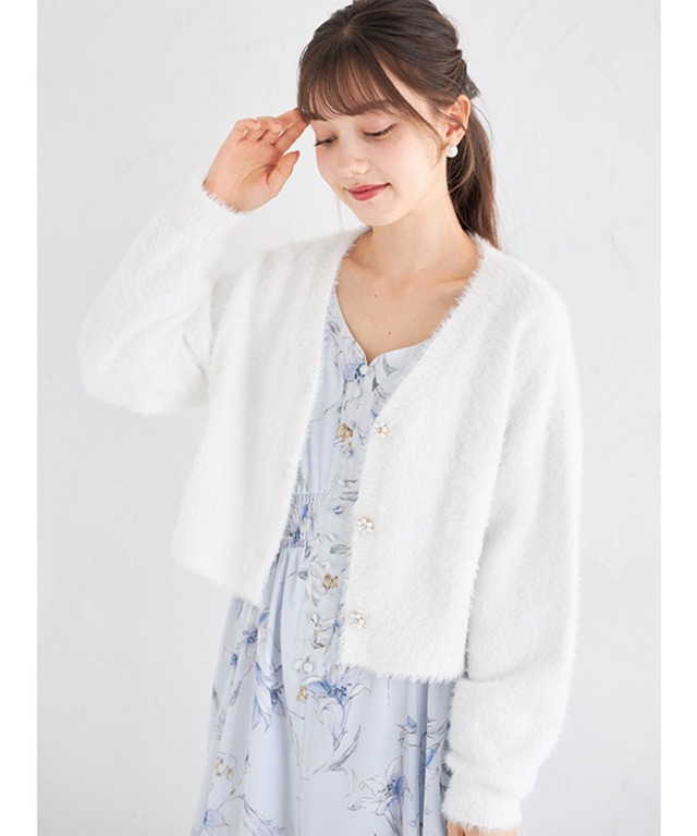 愛らしく煌めくフラワーモチーフ釦をあしらいました。