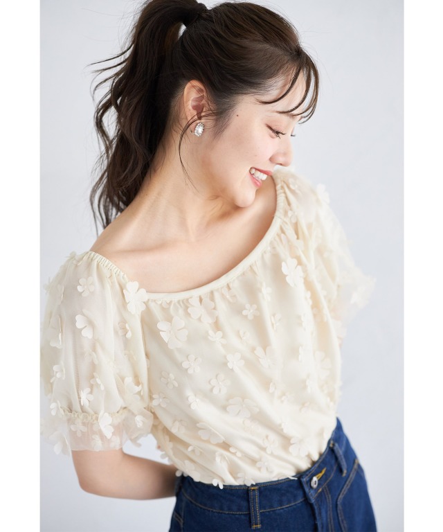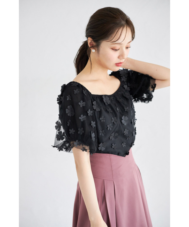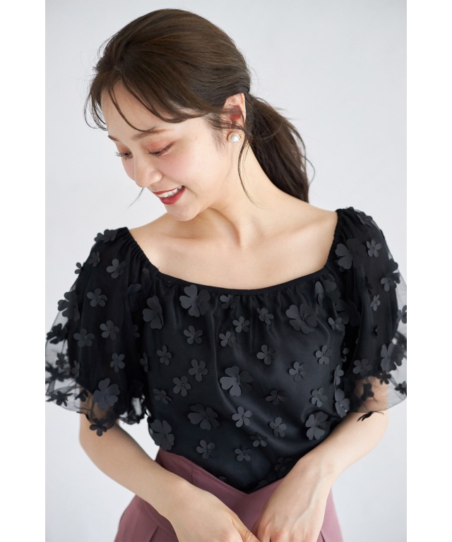 涼やかに着映えるチュール生地のブラウス。