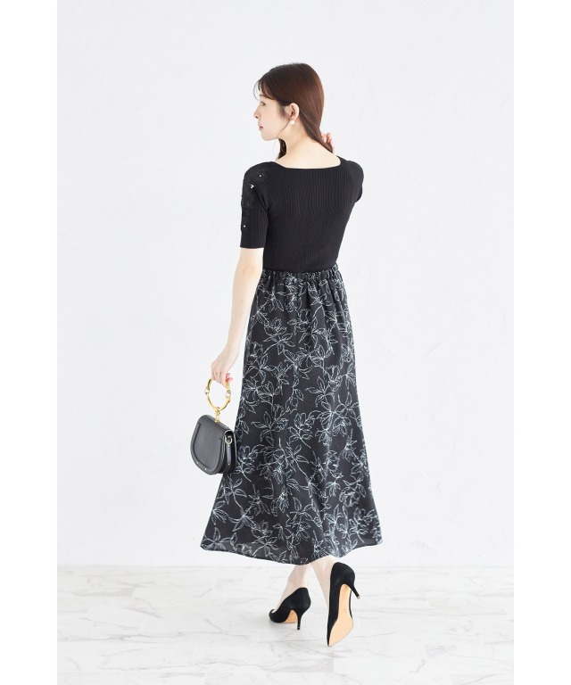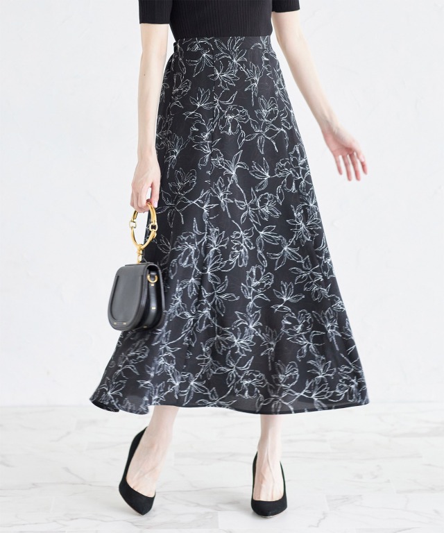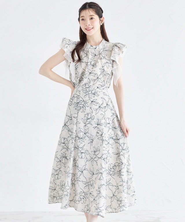 「ラインフラワープリントフリルスリーブブラウス」 と