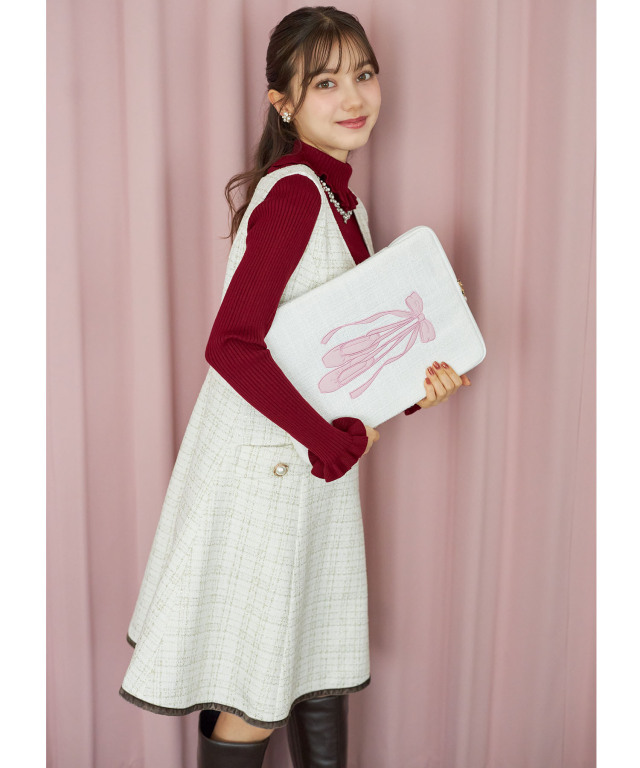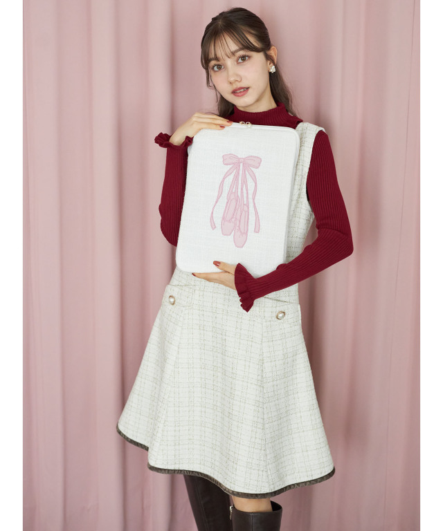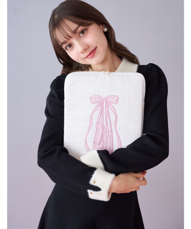 愛らしいバレエシューズの刺繍を施したパソコンケースです。