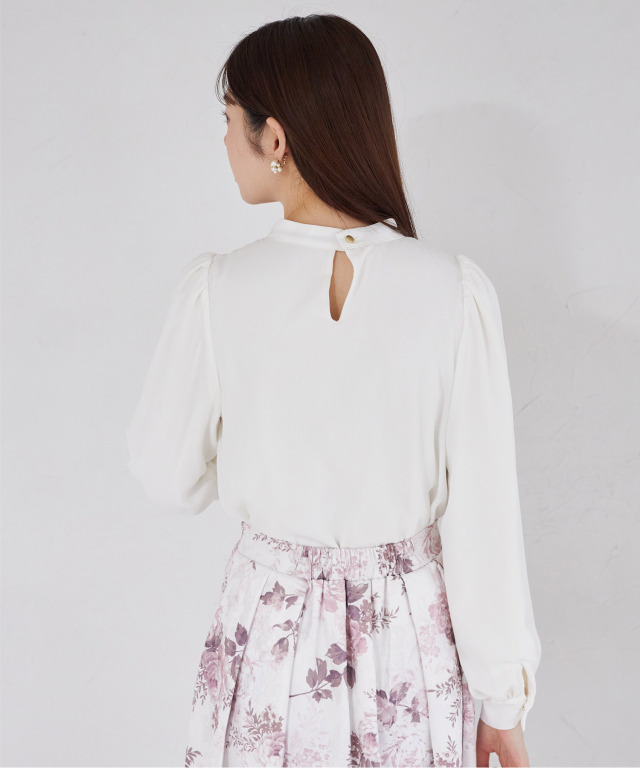 袖まで暖かい裏起毛素材のブラウス。