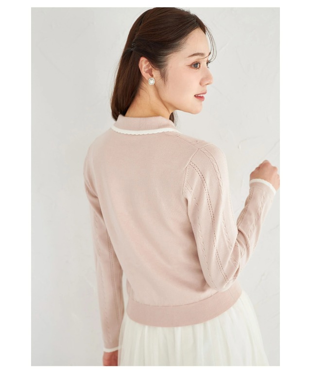 襟・前立て・袖口はスカラップカットで仕上げ、