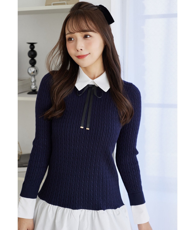 首元にはグログランリボンをあしらい、甘さをプラス。