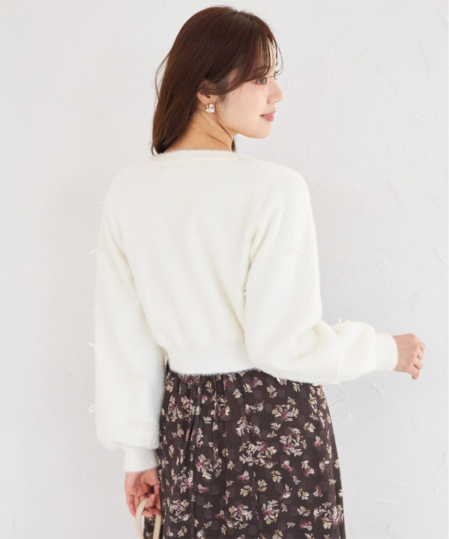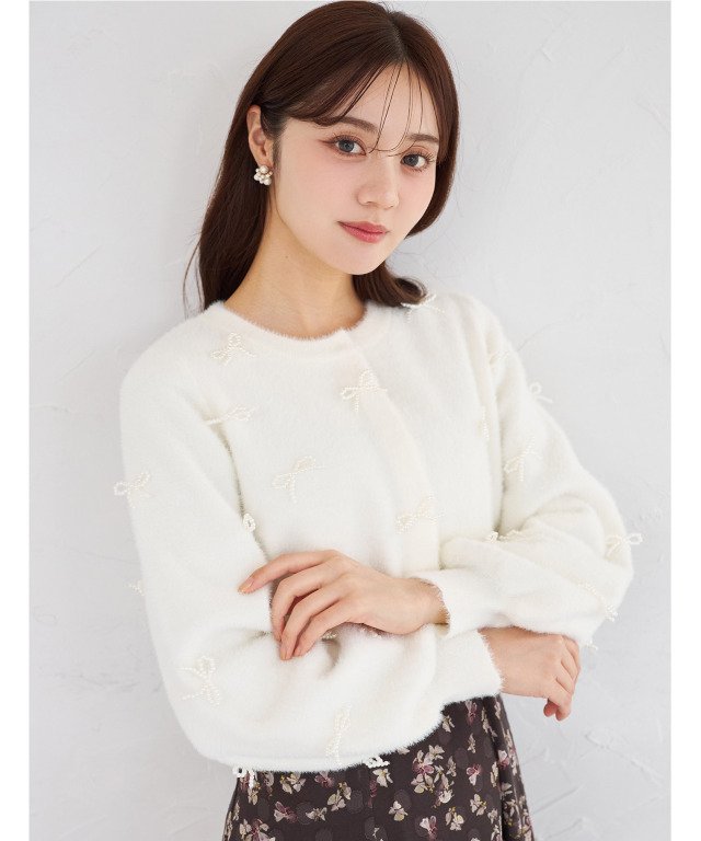 小さなパールを使ったリボンモチーフをあしらい、