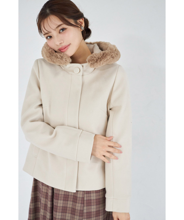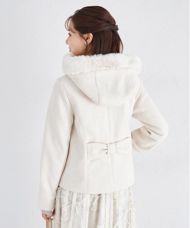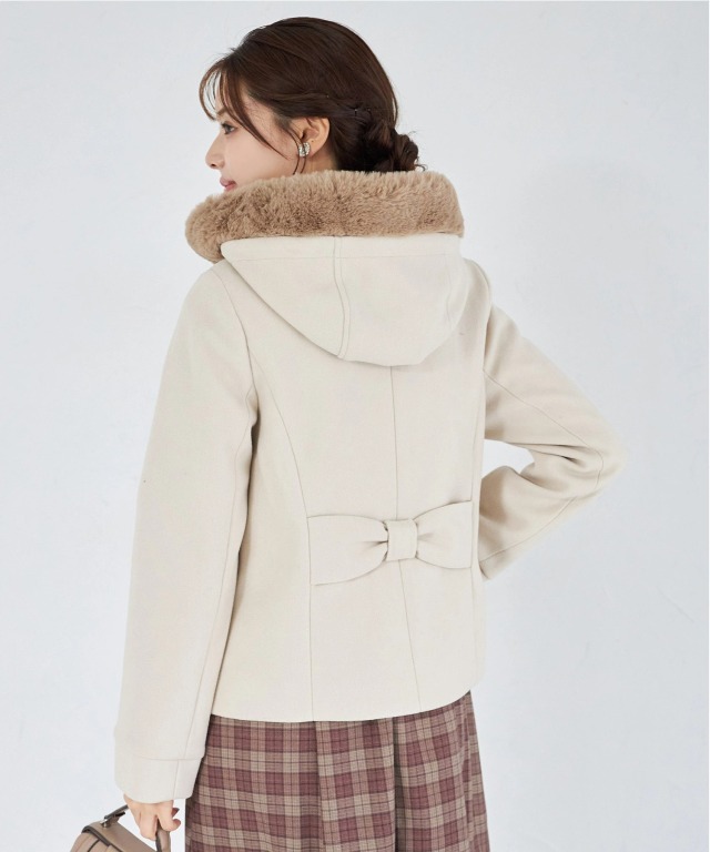 取り外し可能な2WAYファー付き後ろリボンショートコート