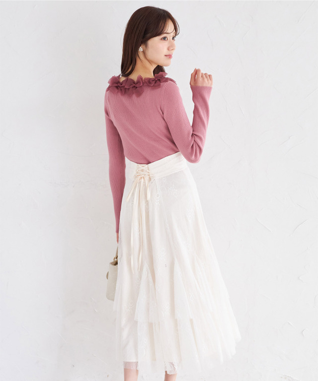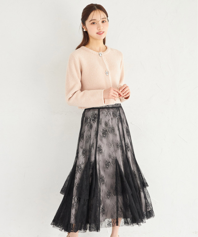 繊細な華やかさを演出するチュールレーススカート。