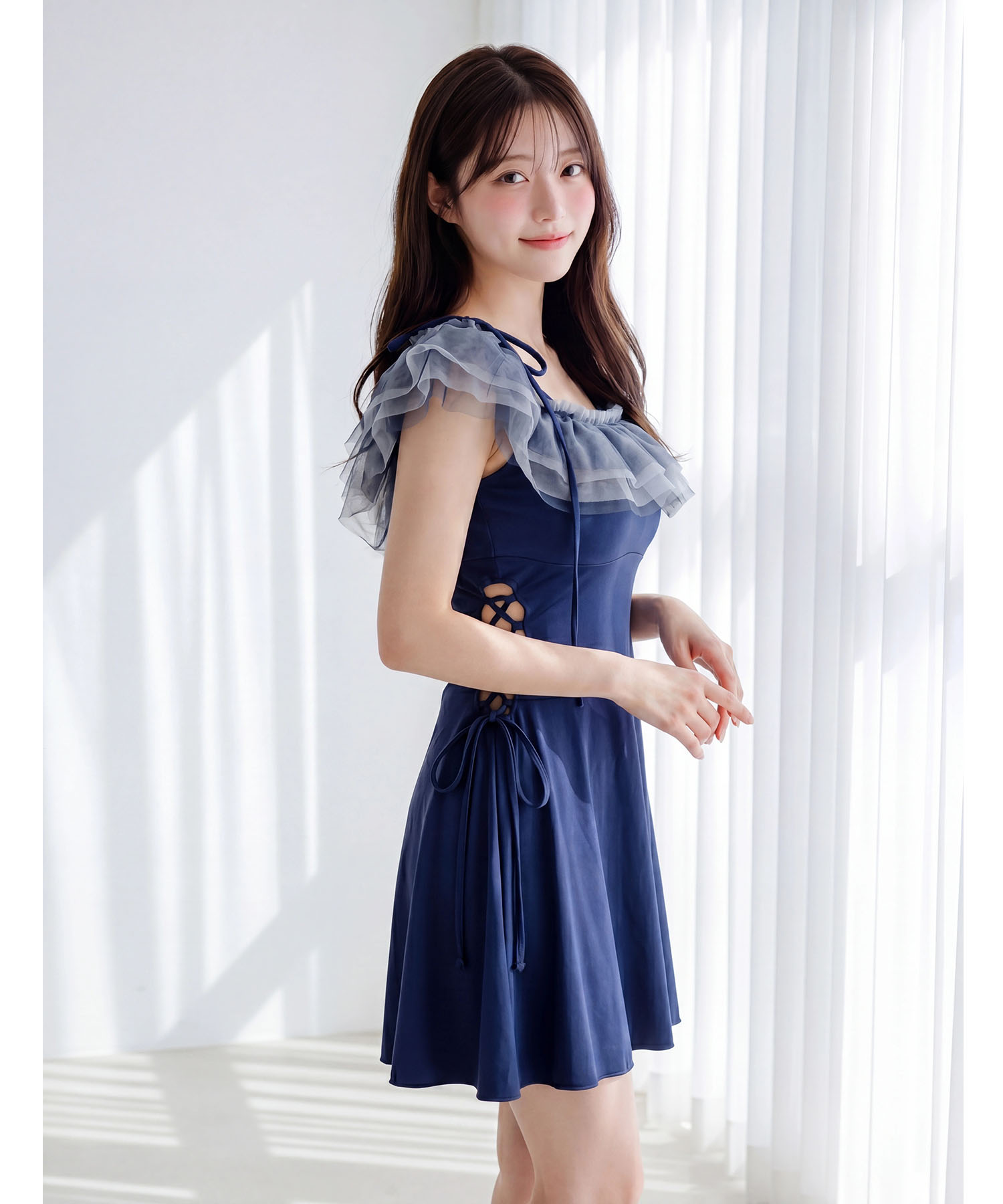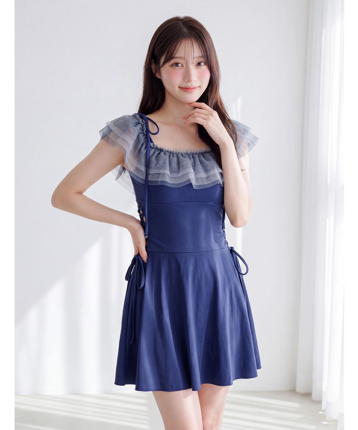ウエストの両サイドにレースアップデザインを施し、