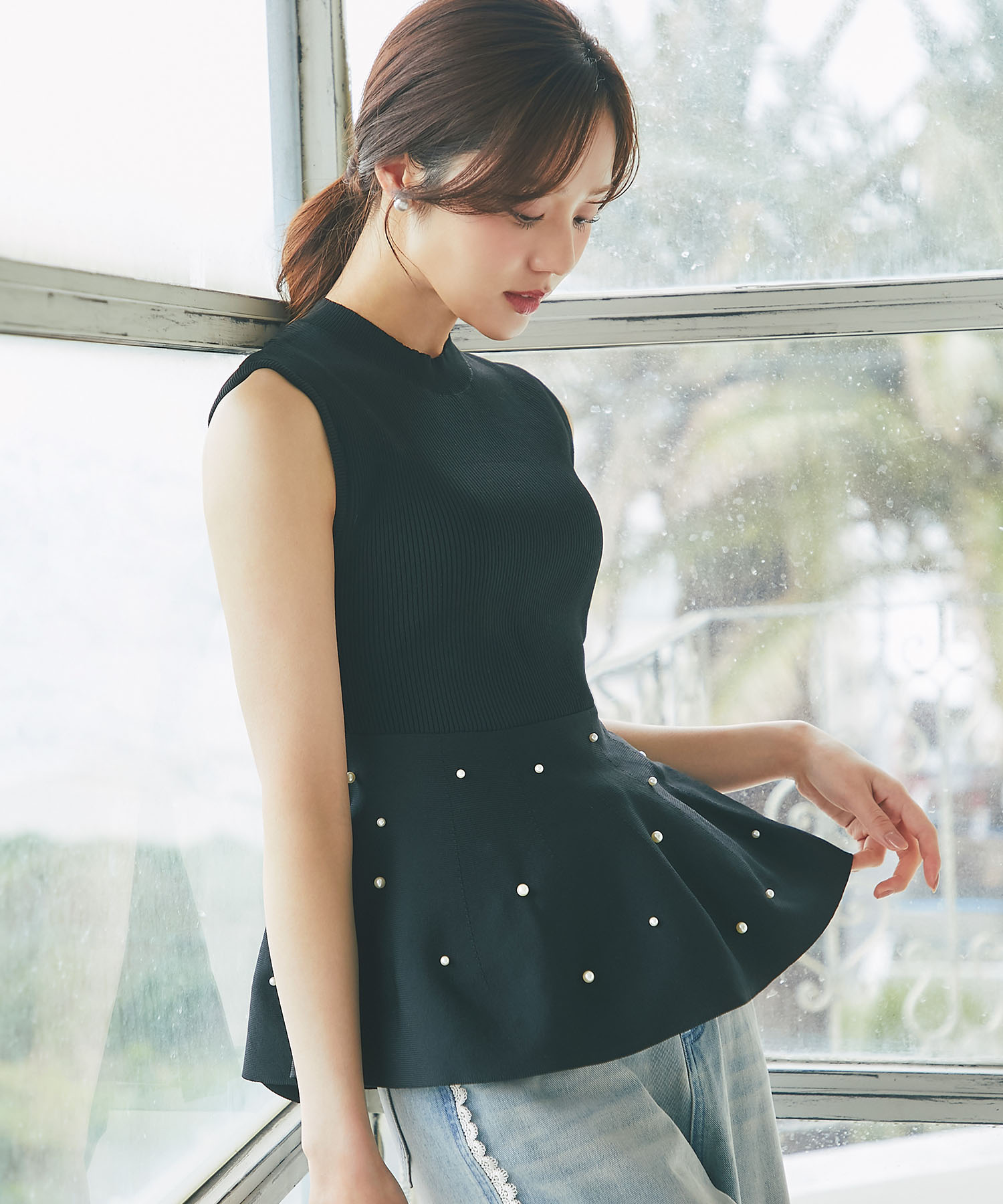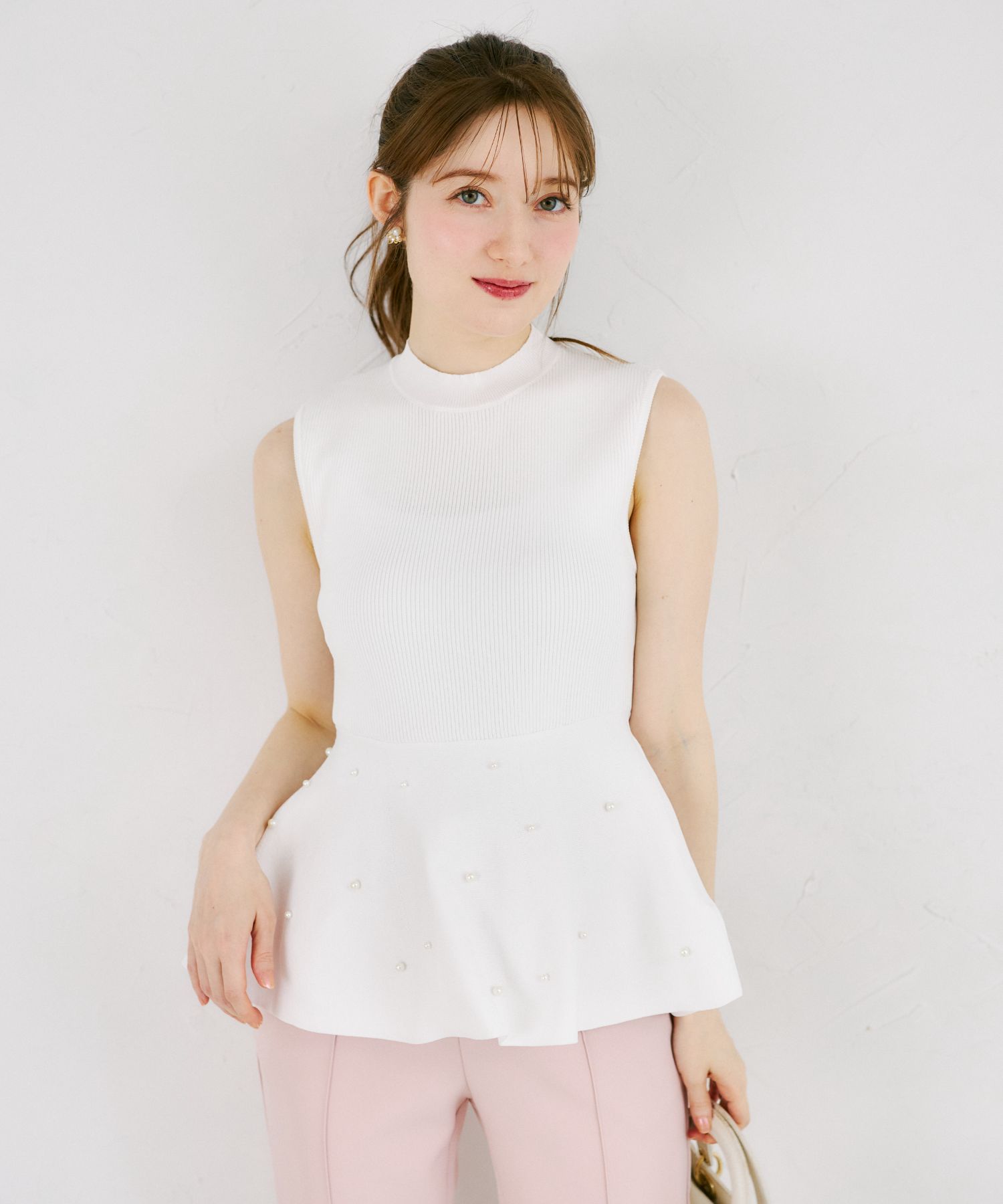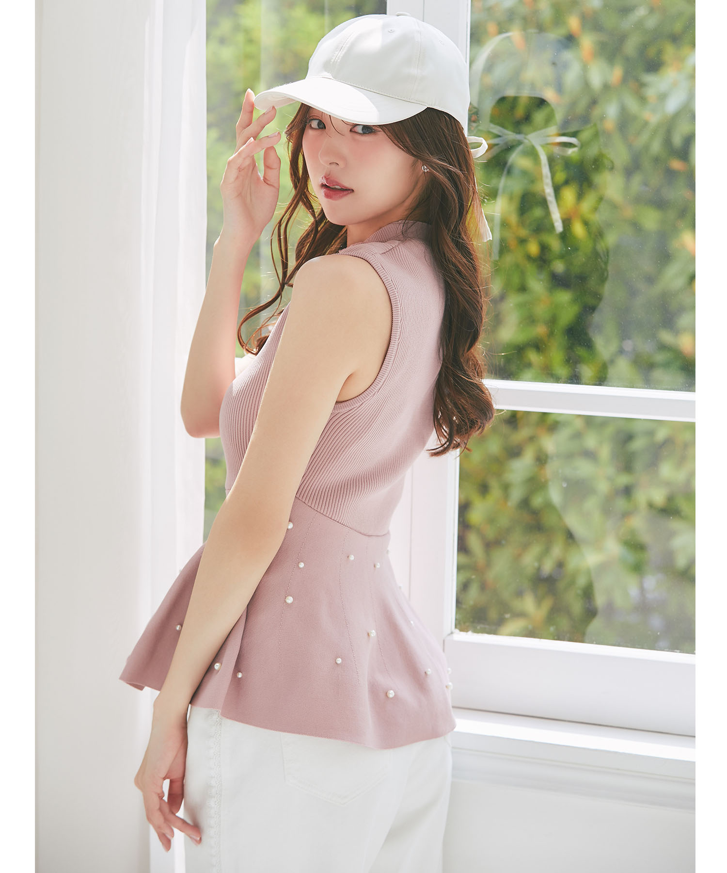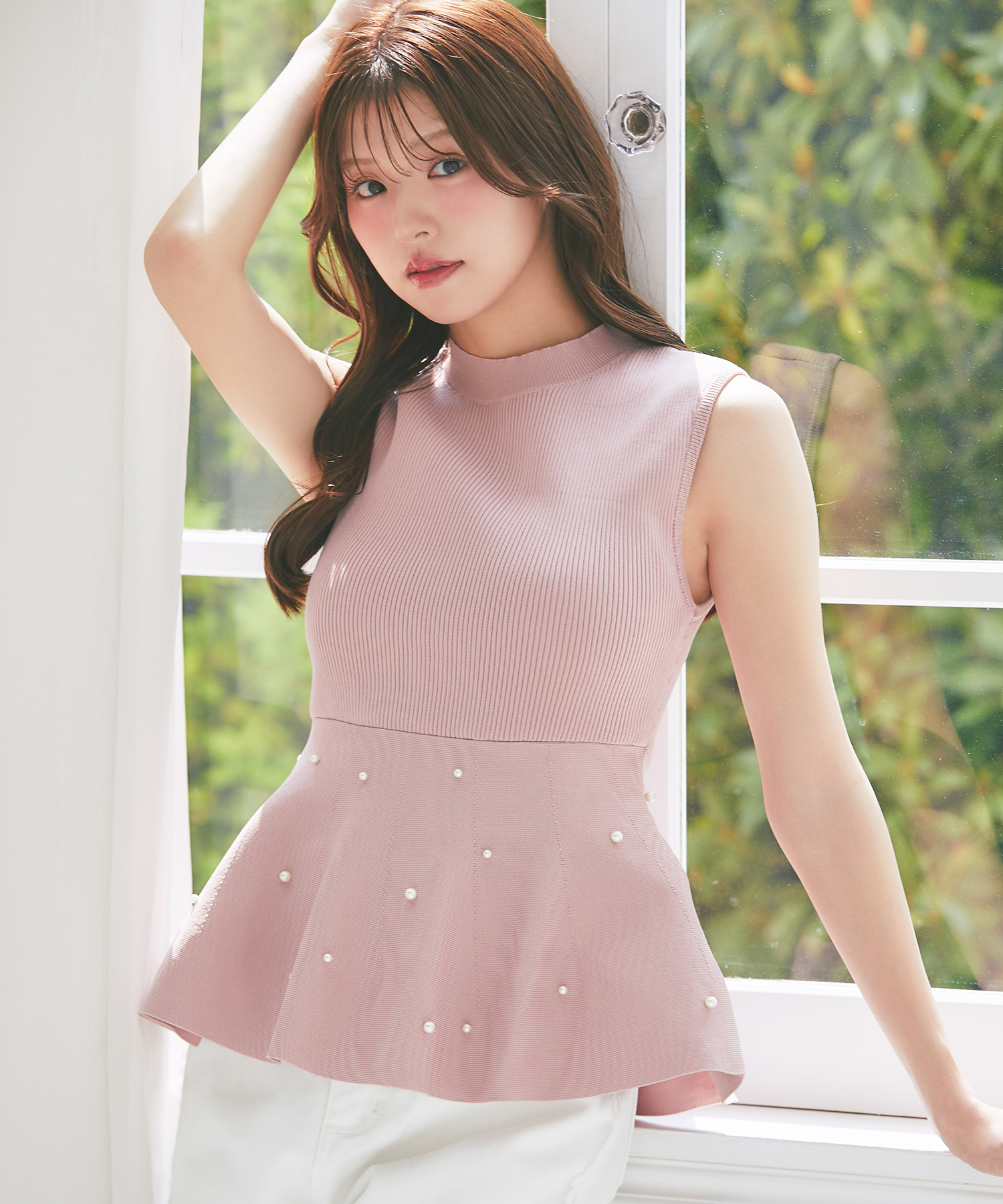 5月上旬販売予定!入荷連絡受付中☆パール付きペプラムニットプルオーバー《SummerVacationStyle》※鈴木ゆうかさんはピンク着用