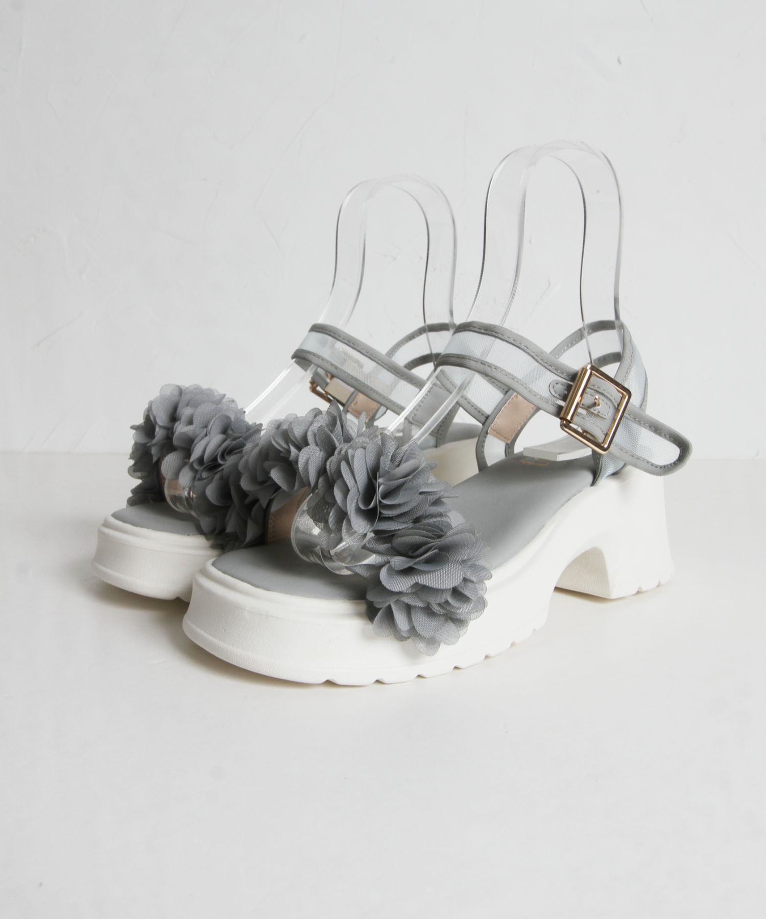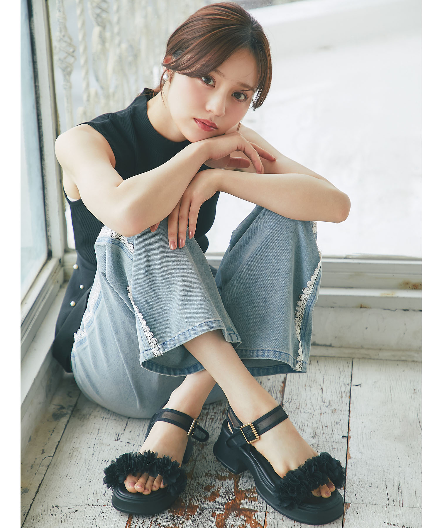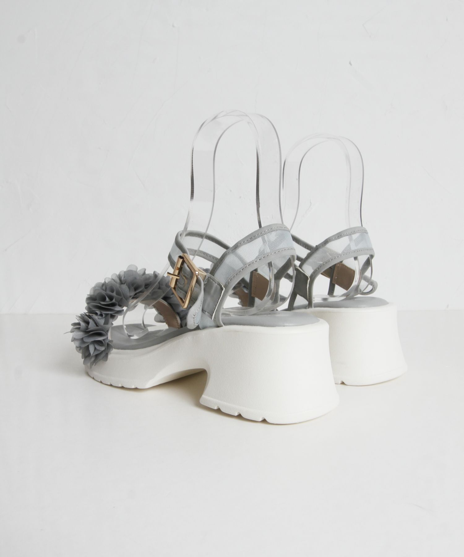 4月下旬販売予定!入荷連絡受付中☆フラワーフリル付きシアーストラップサンダル《SummerVacationStyle》