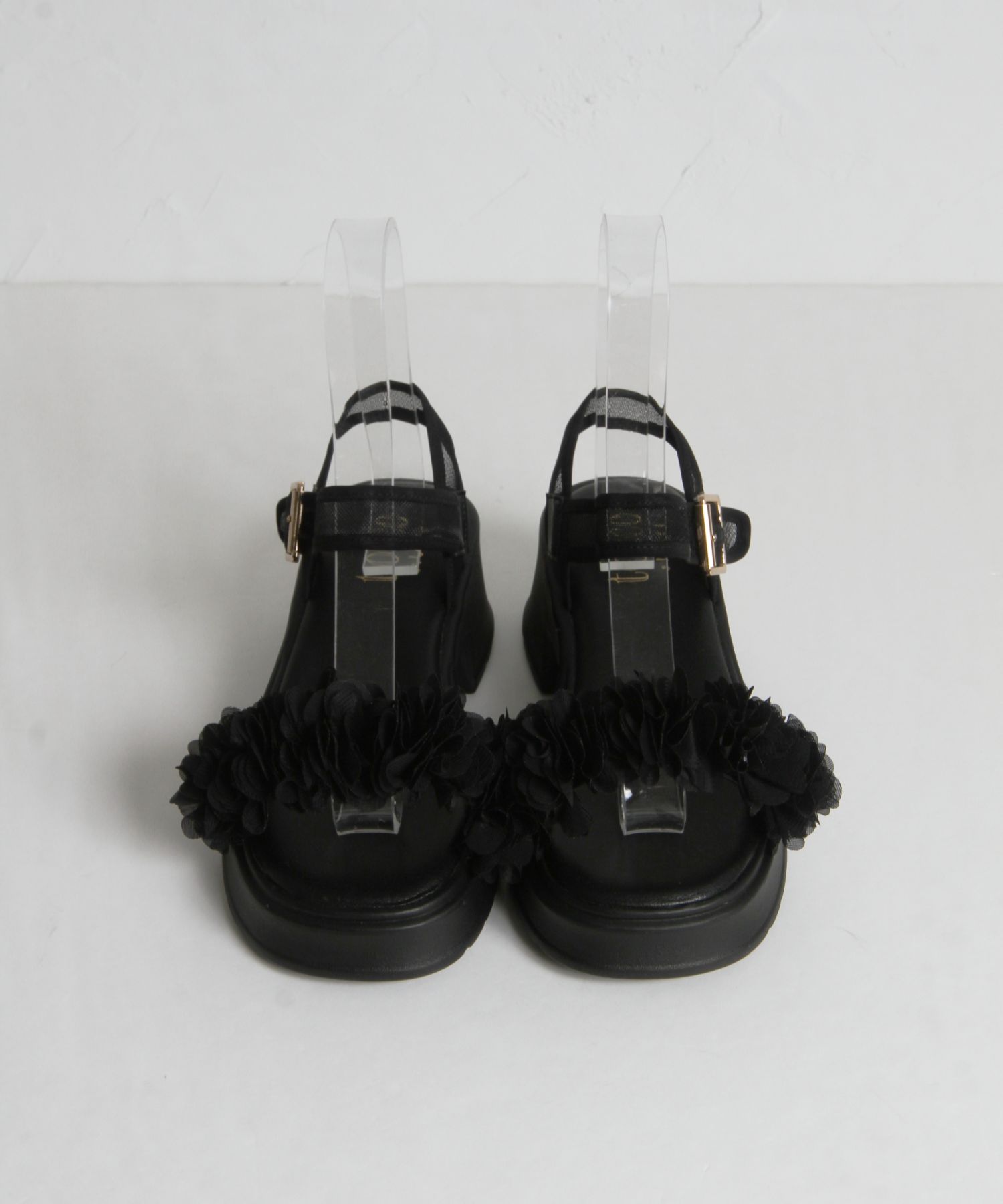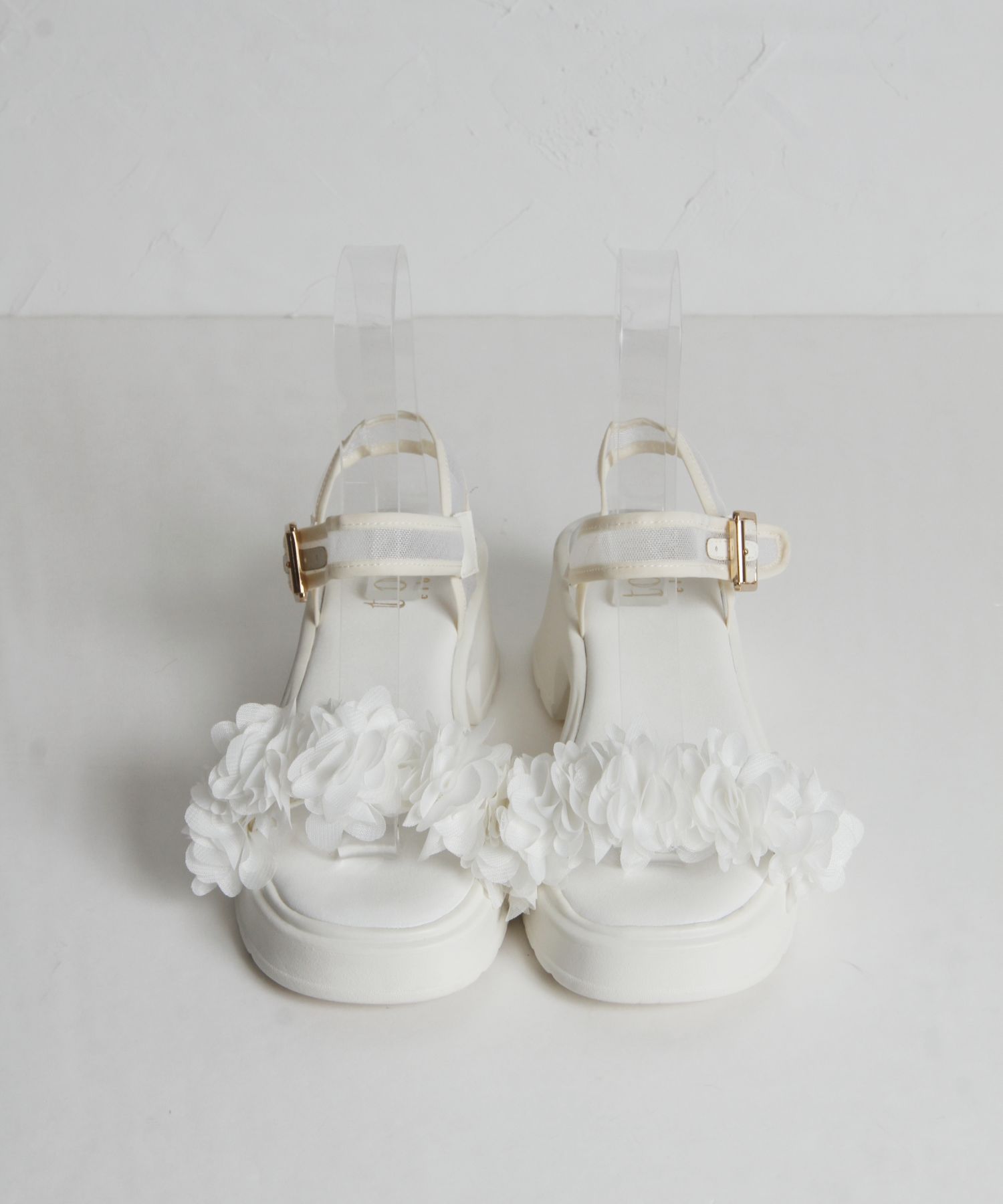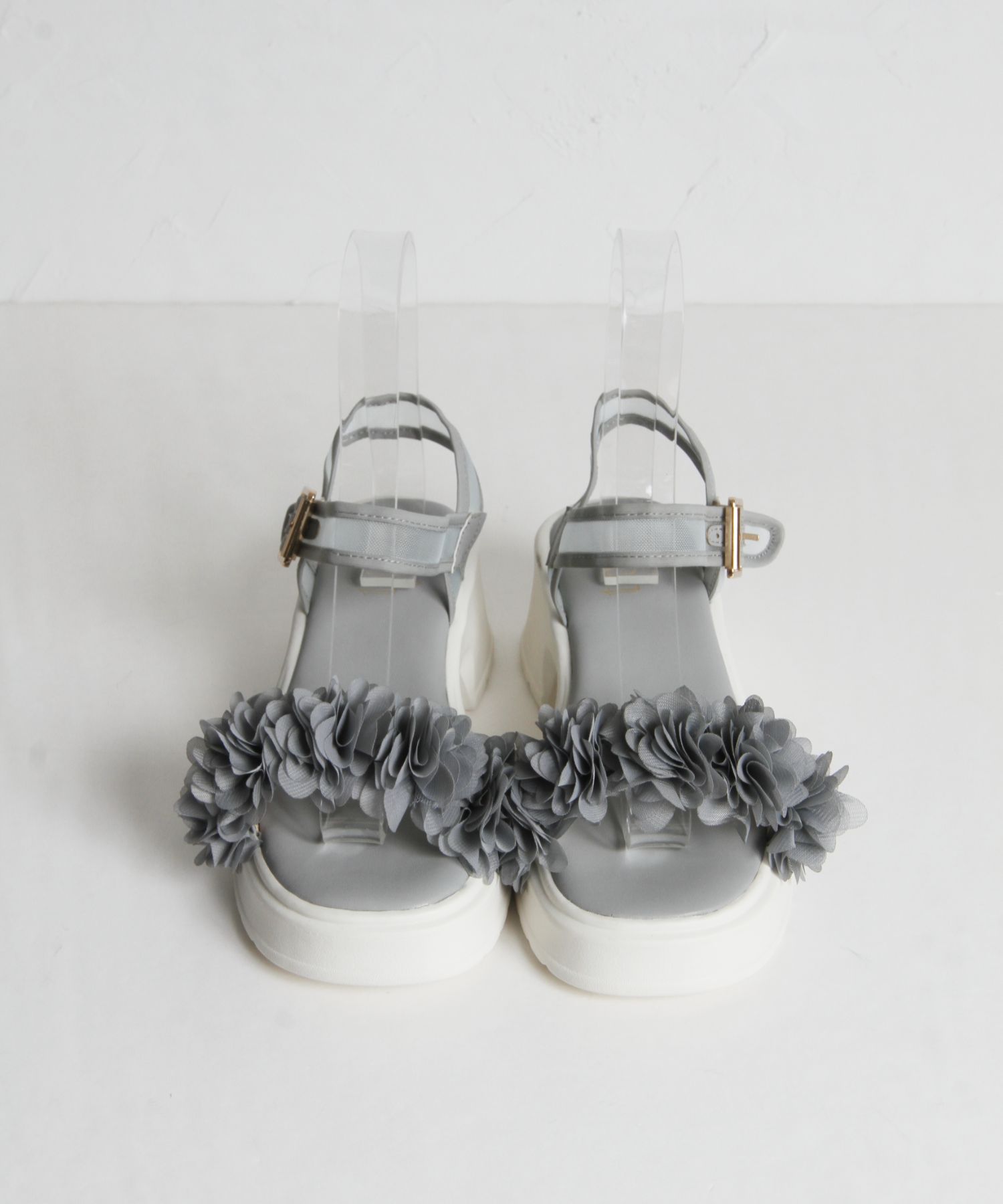 4月下旬販売予定!入荷連絡受付中☆フラワーフリル付きシアーストラップサンダル《SummerVacationStyle》