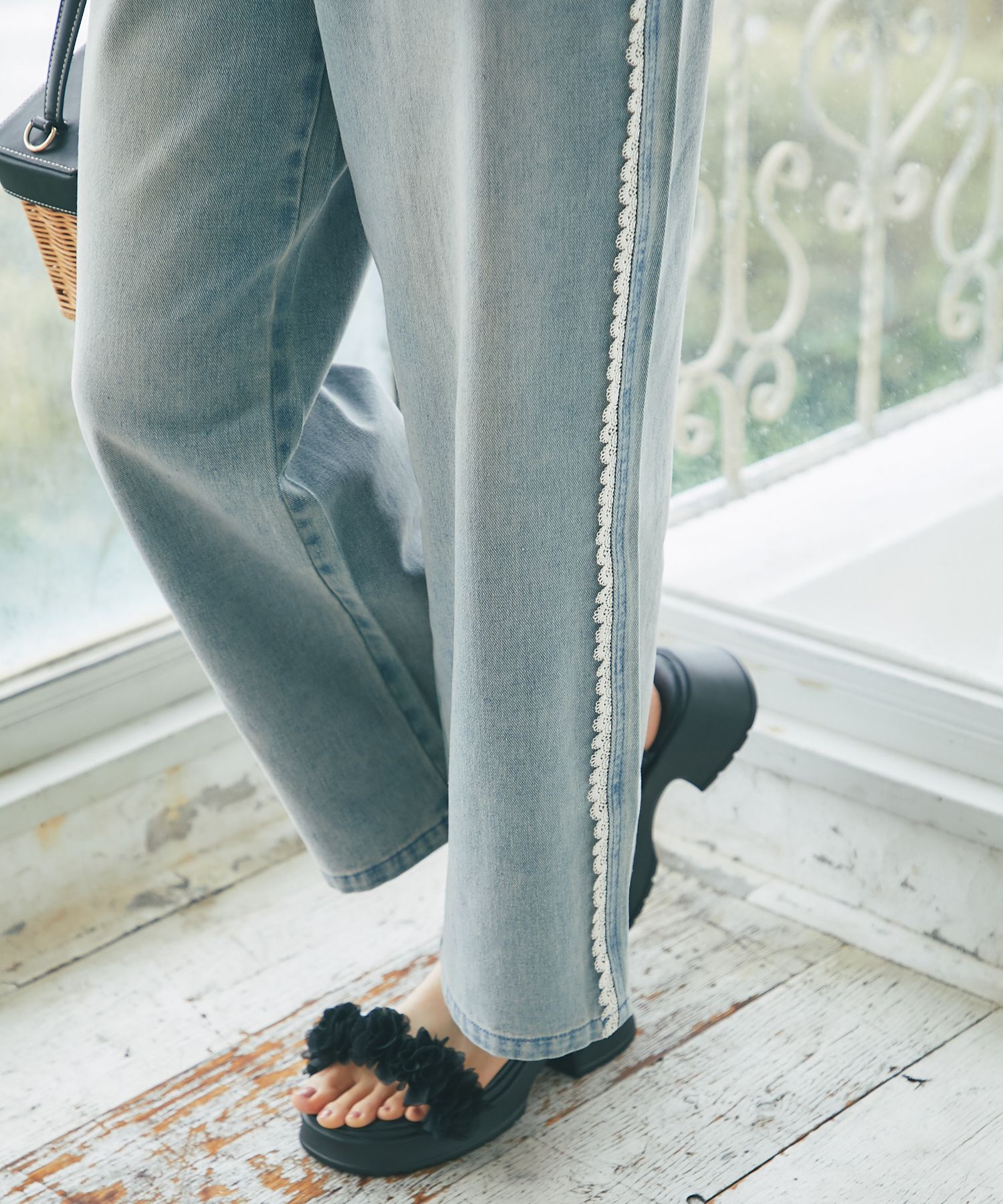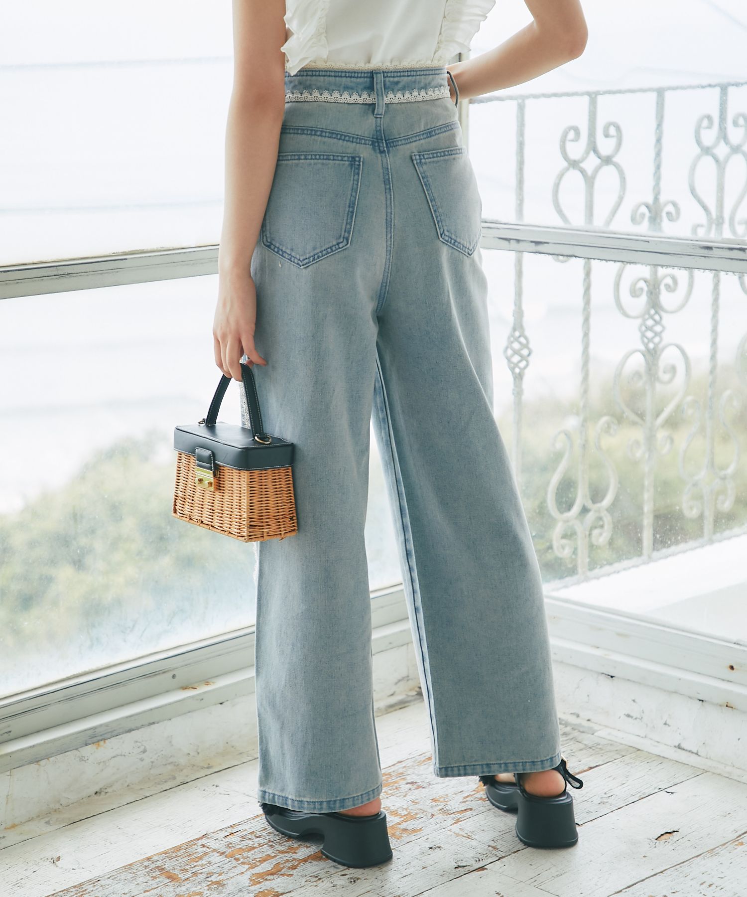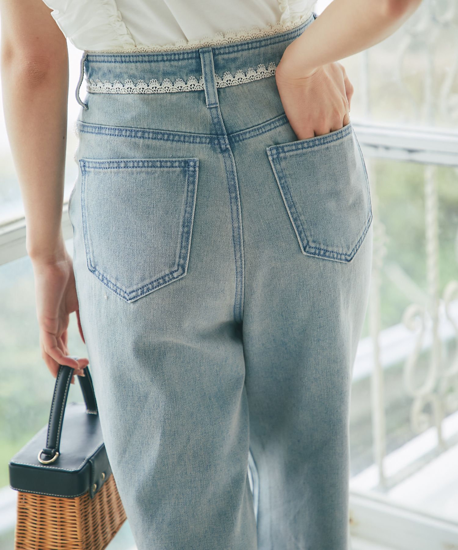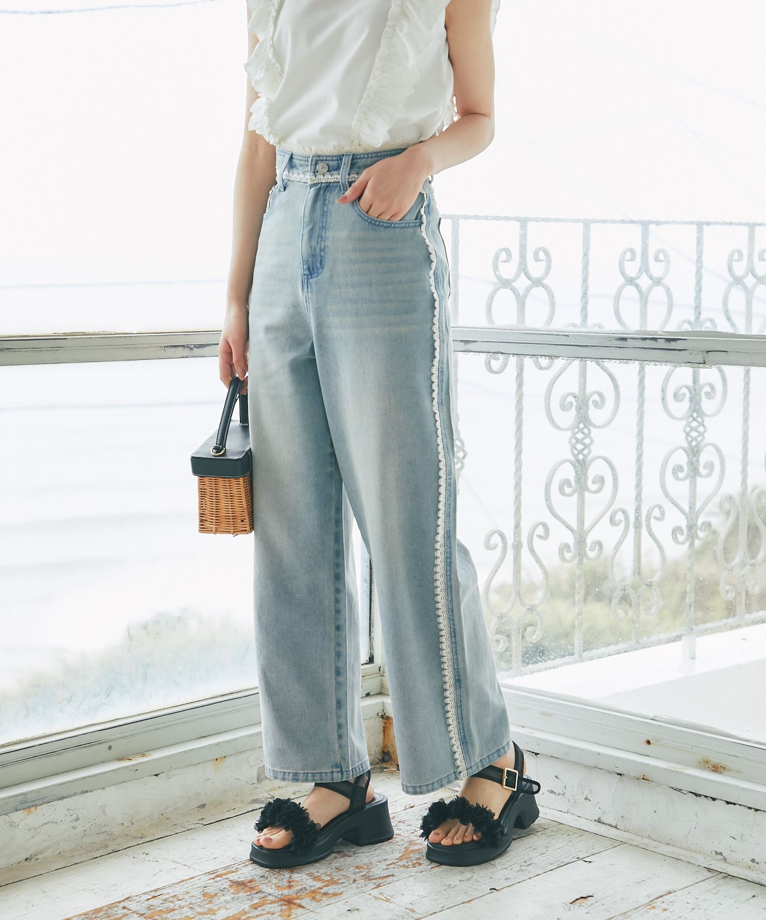 5月上旬販売予定!入荷連絡受付中☆【S・Mサイズ展開】レースラインストレートデニムパンツ《SummerVacationStyle》※鈴木ゆうかさんはホワイト着用