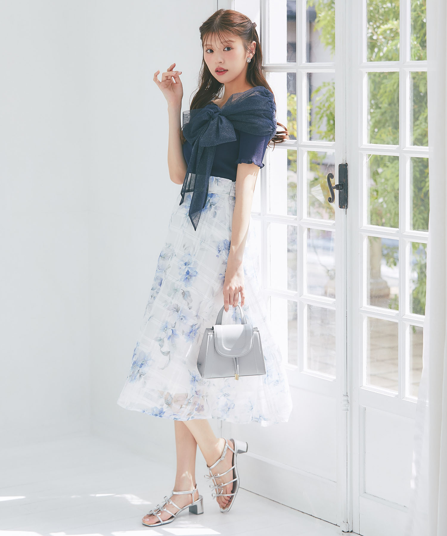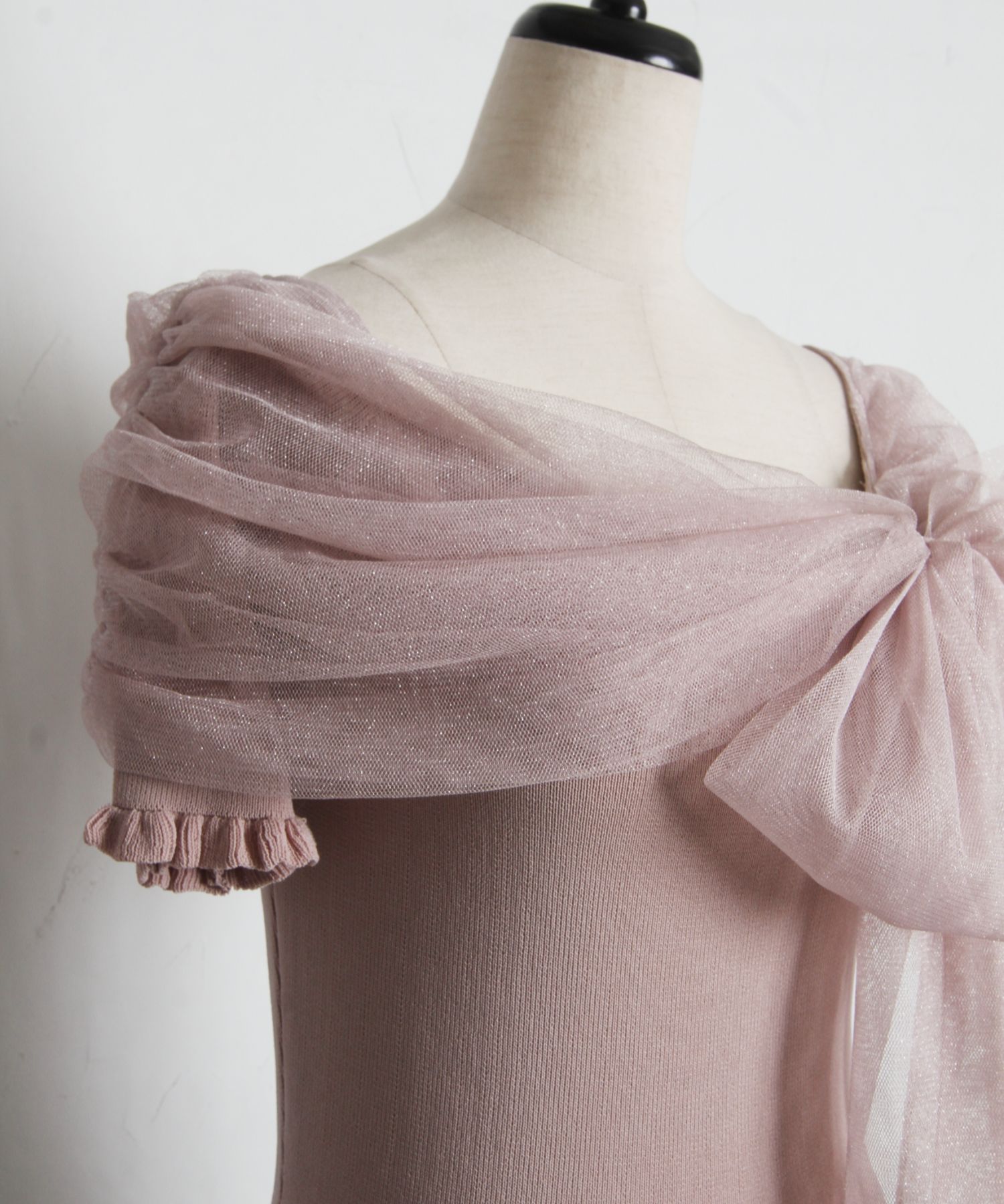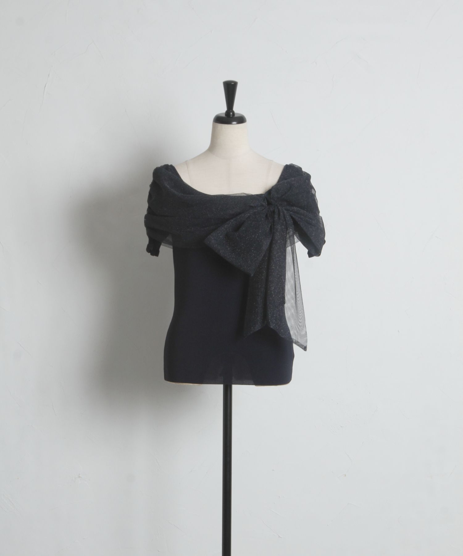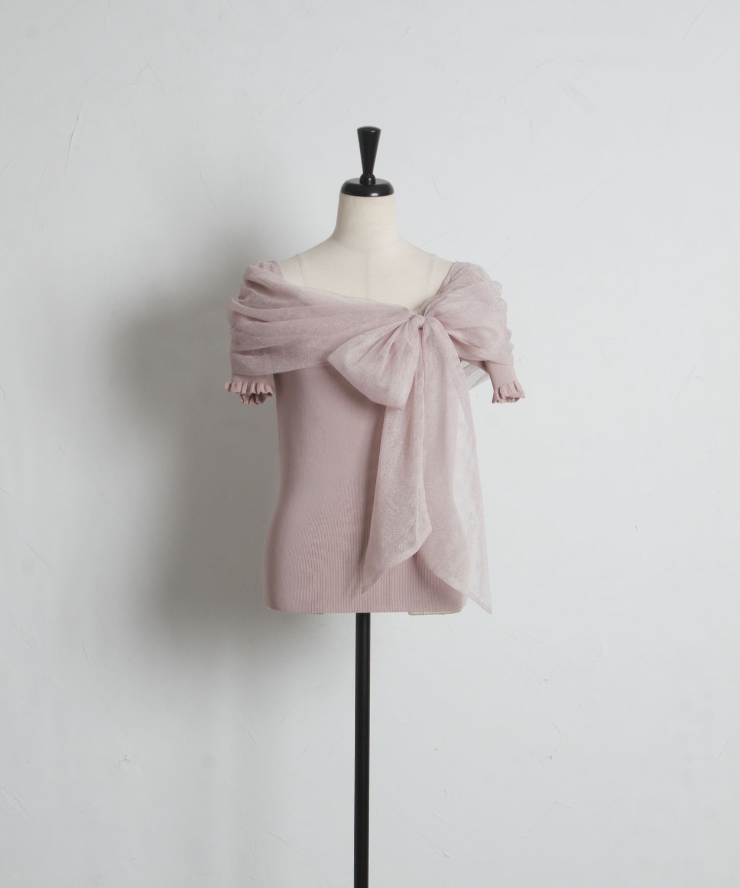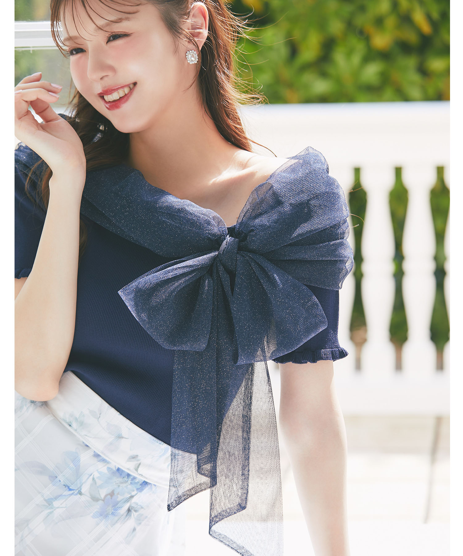 5月上旬販売予定!入荷連絡受付中☆オフショルリボンラメチュールニットプルオーバー※鈴木ゆうかさんはネイビー着用