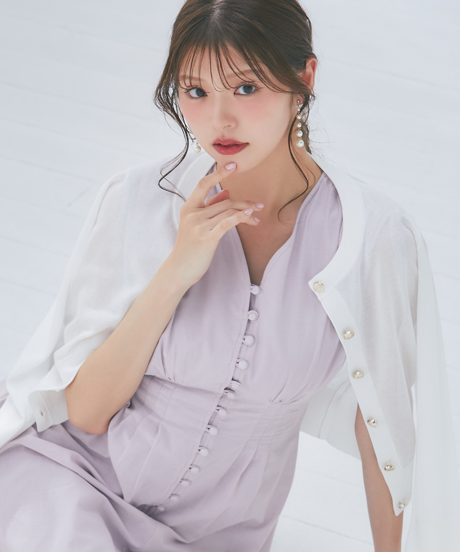 4/29販売予定!入荷連絡受付中☆ゴールド釦ラメシアーニットカーディガン※鈴木ゆうかさんはオフホワイト着用