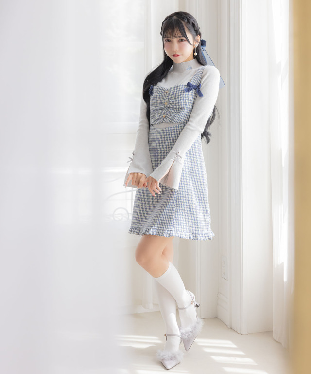 クラシカルな洒落感を演出する千鳥柄ジャンパースカート。