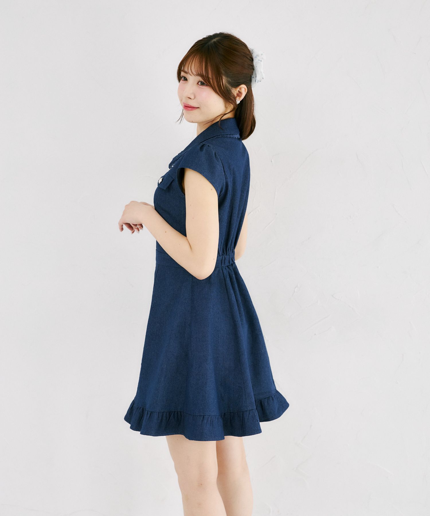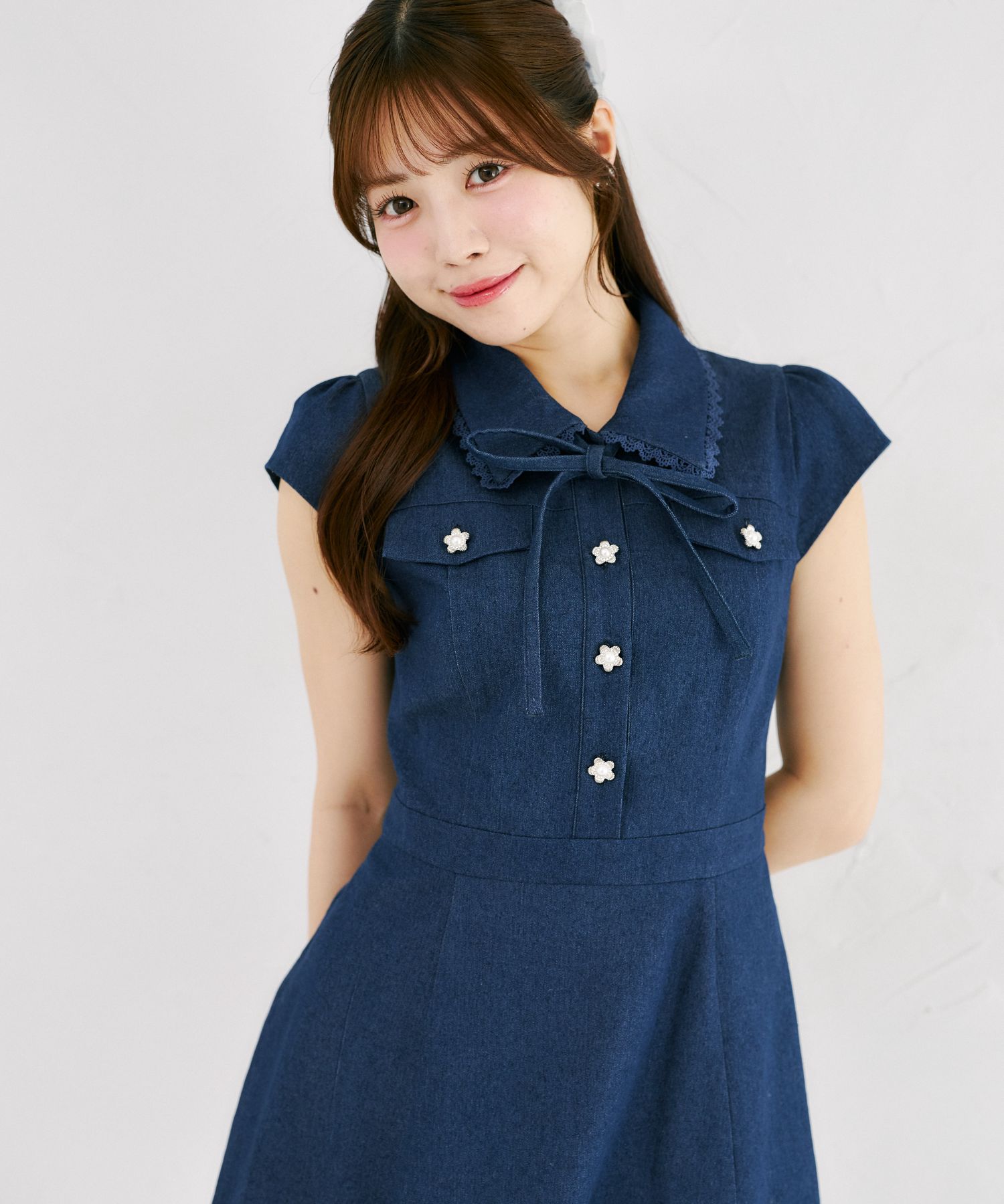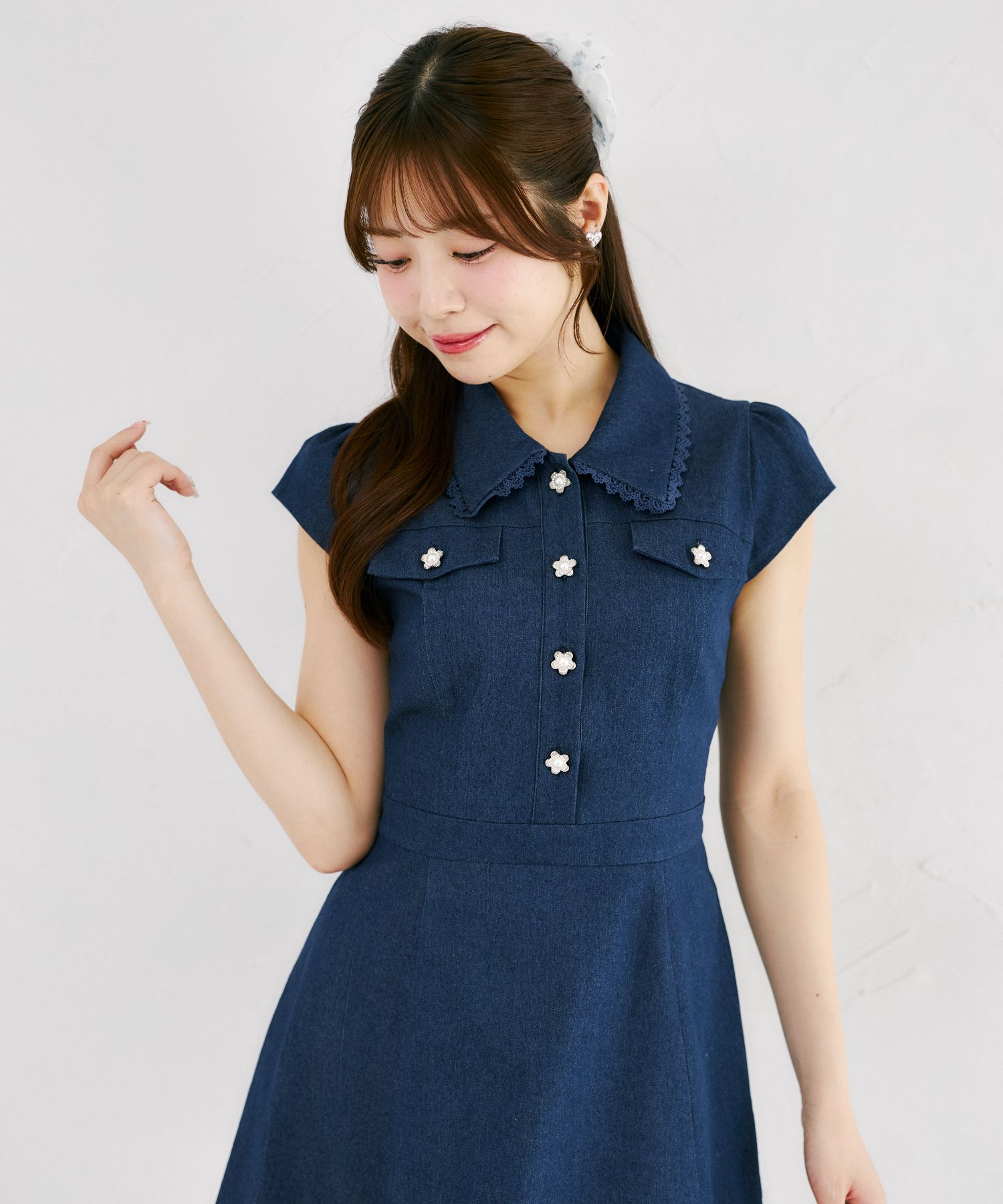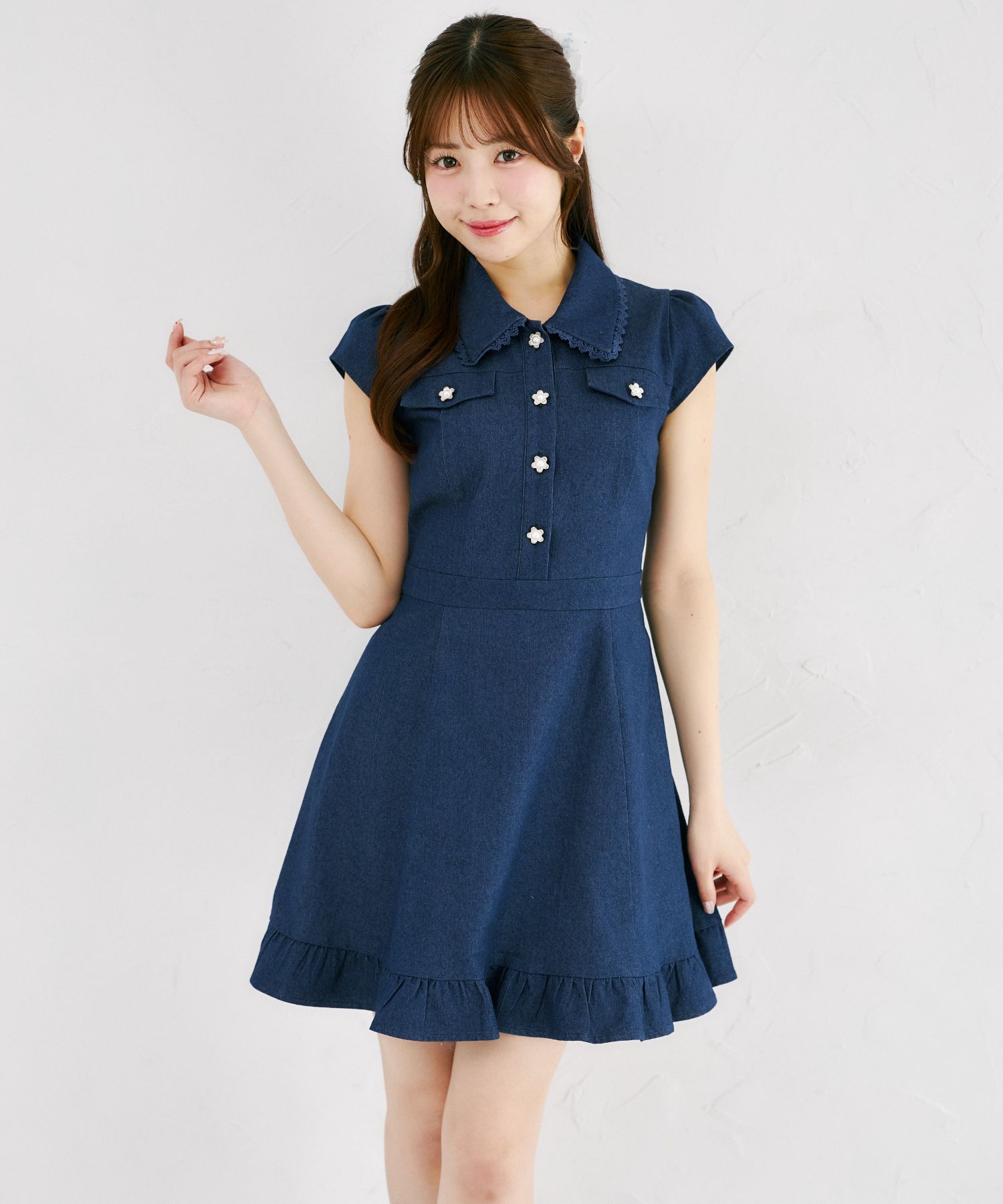 気品ある可愛さで魅せるデニムミニワンピース。