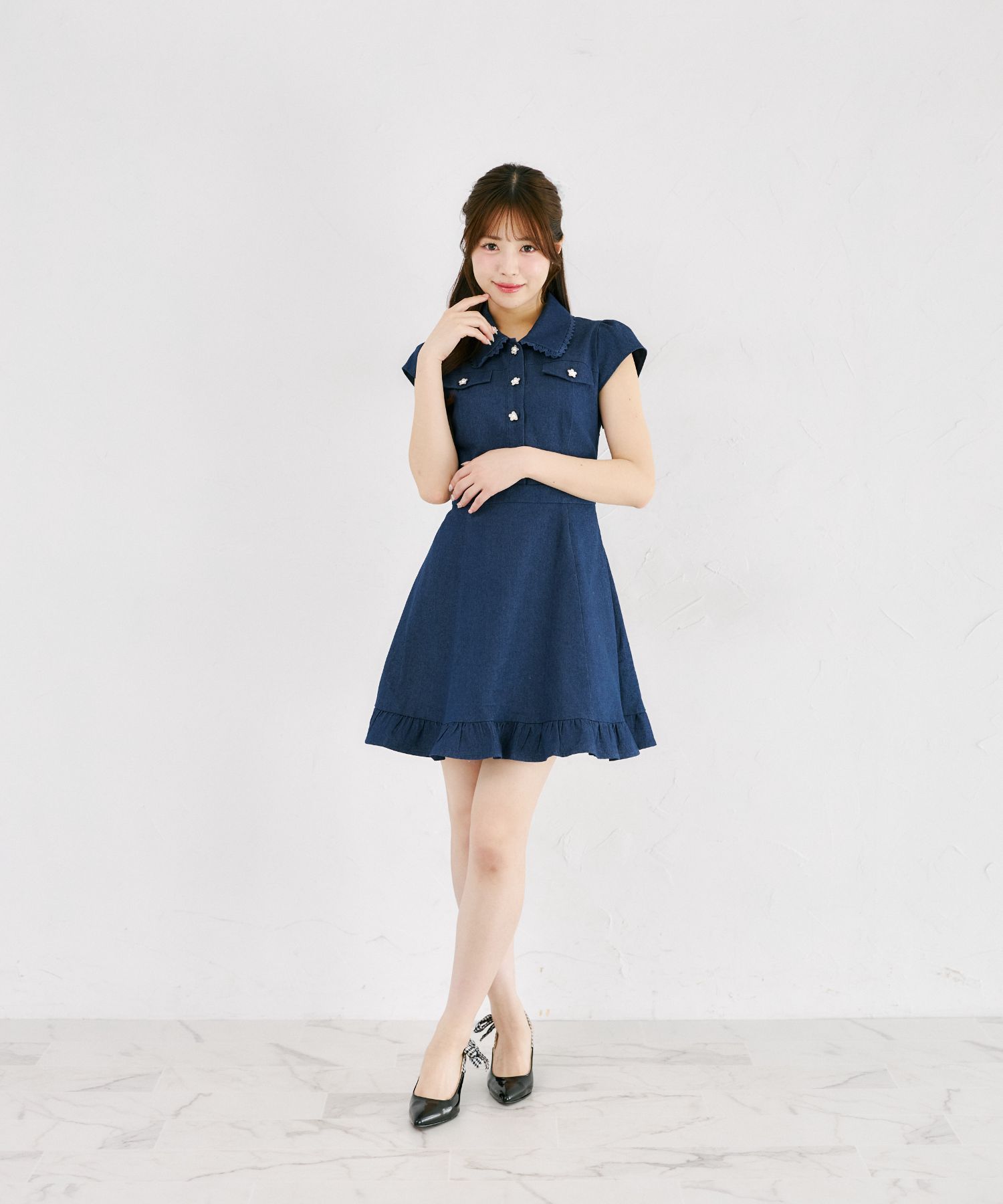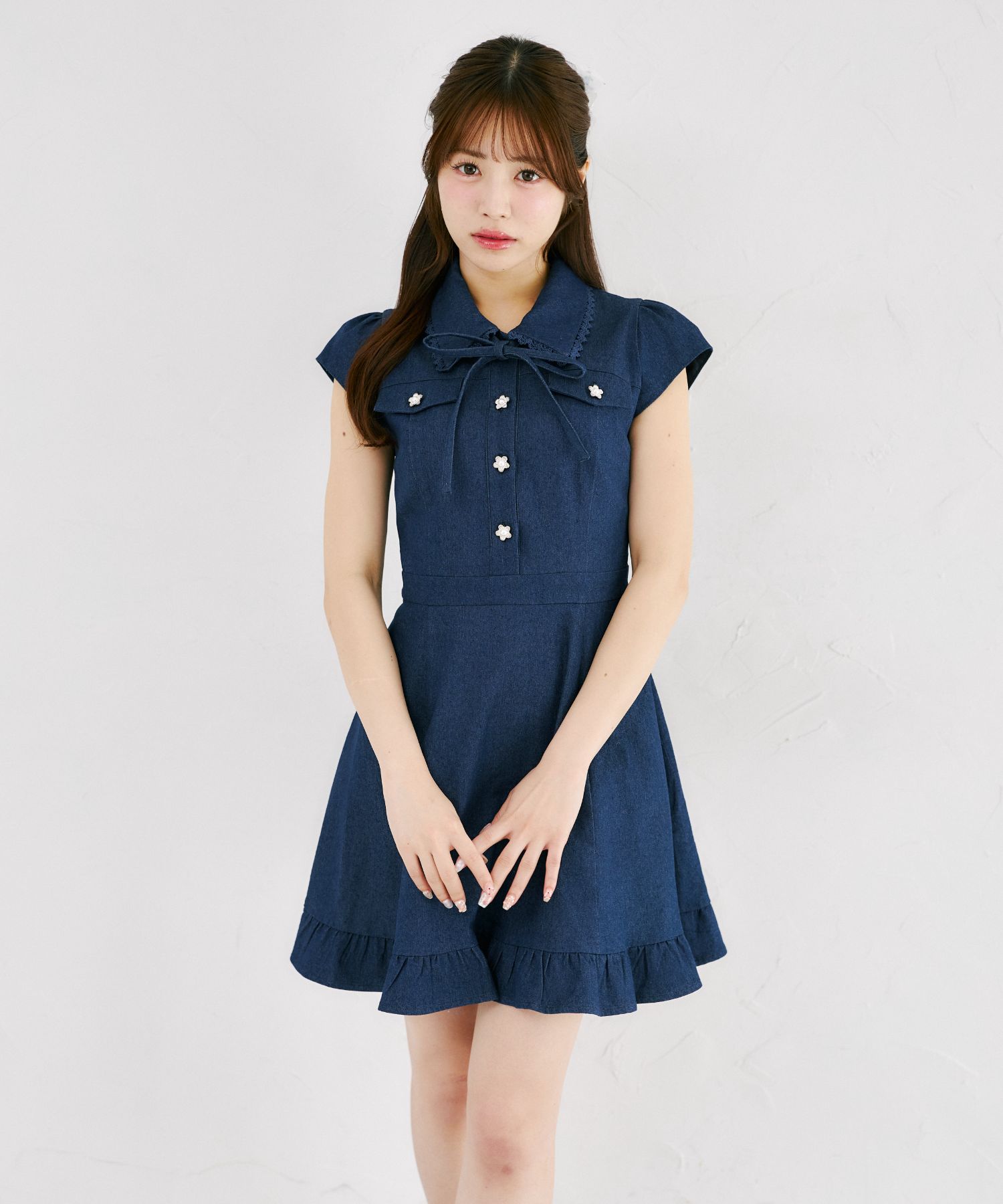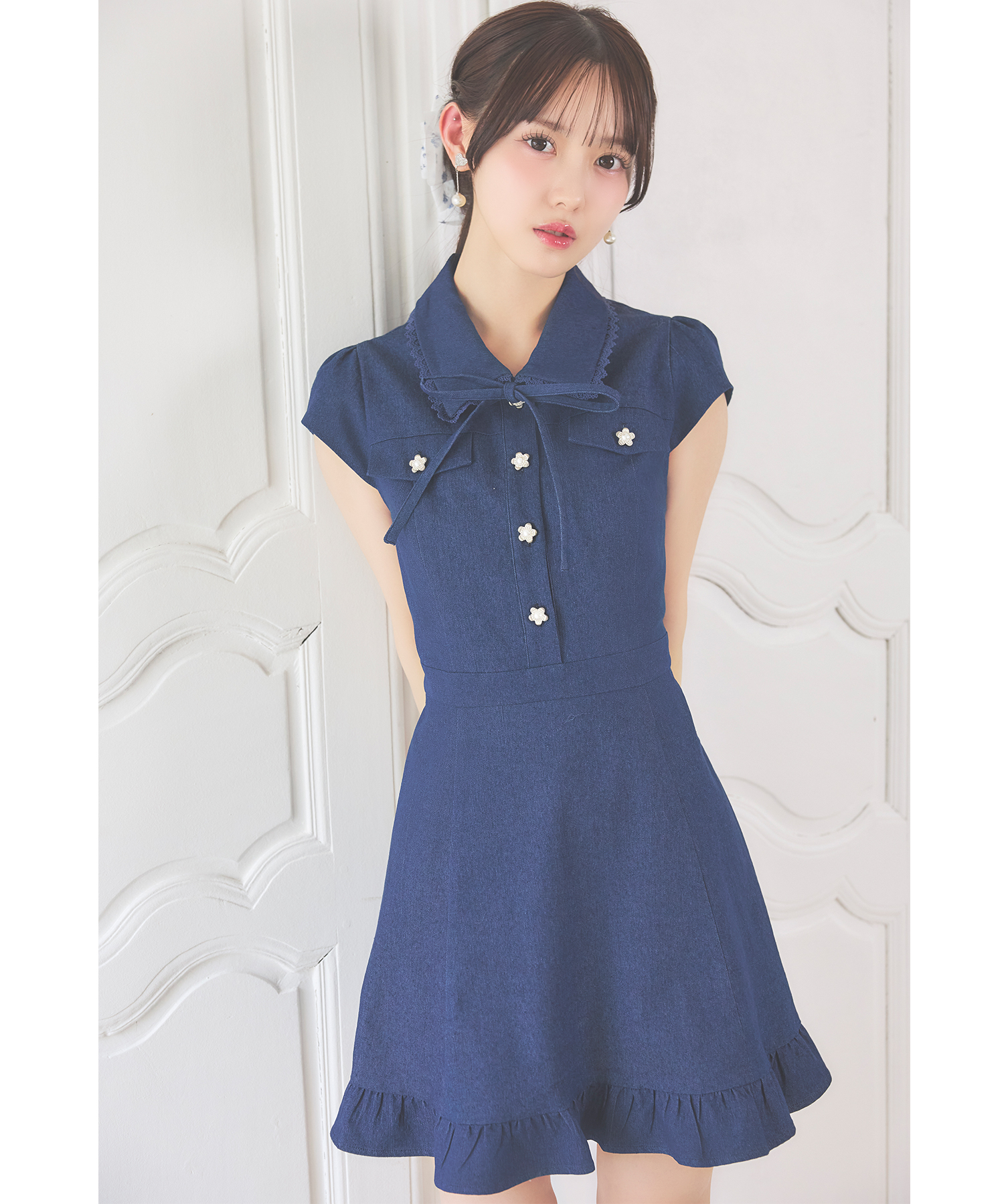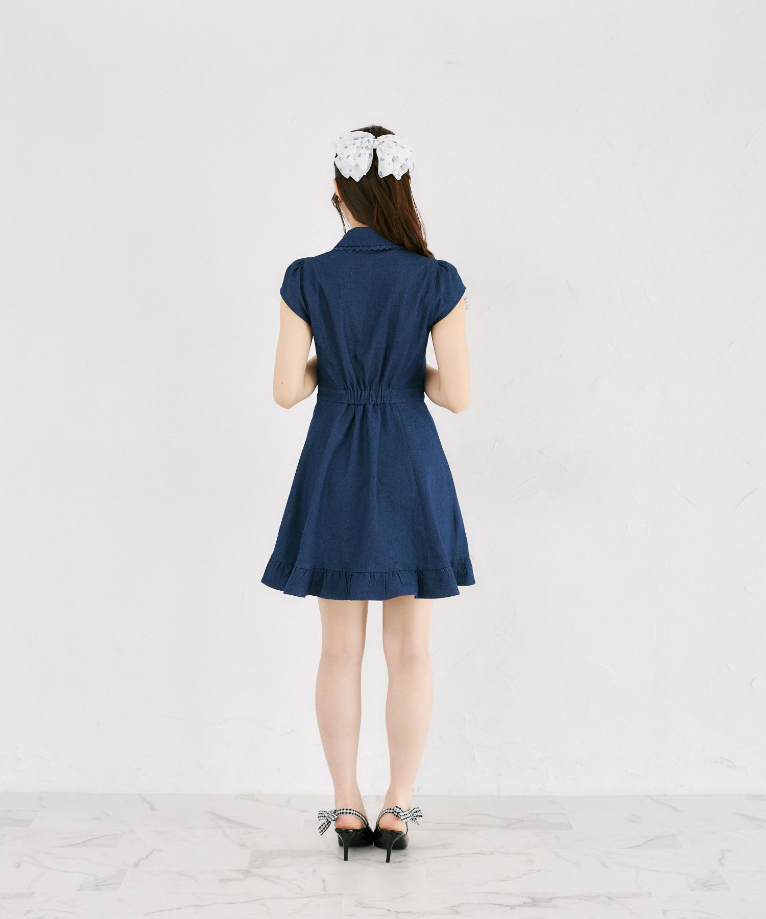 気品ある可愛さで魅せるデニムミニワンピース。
