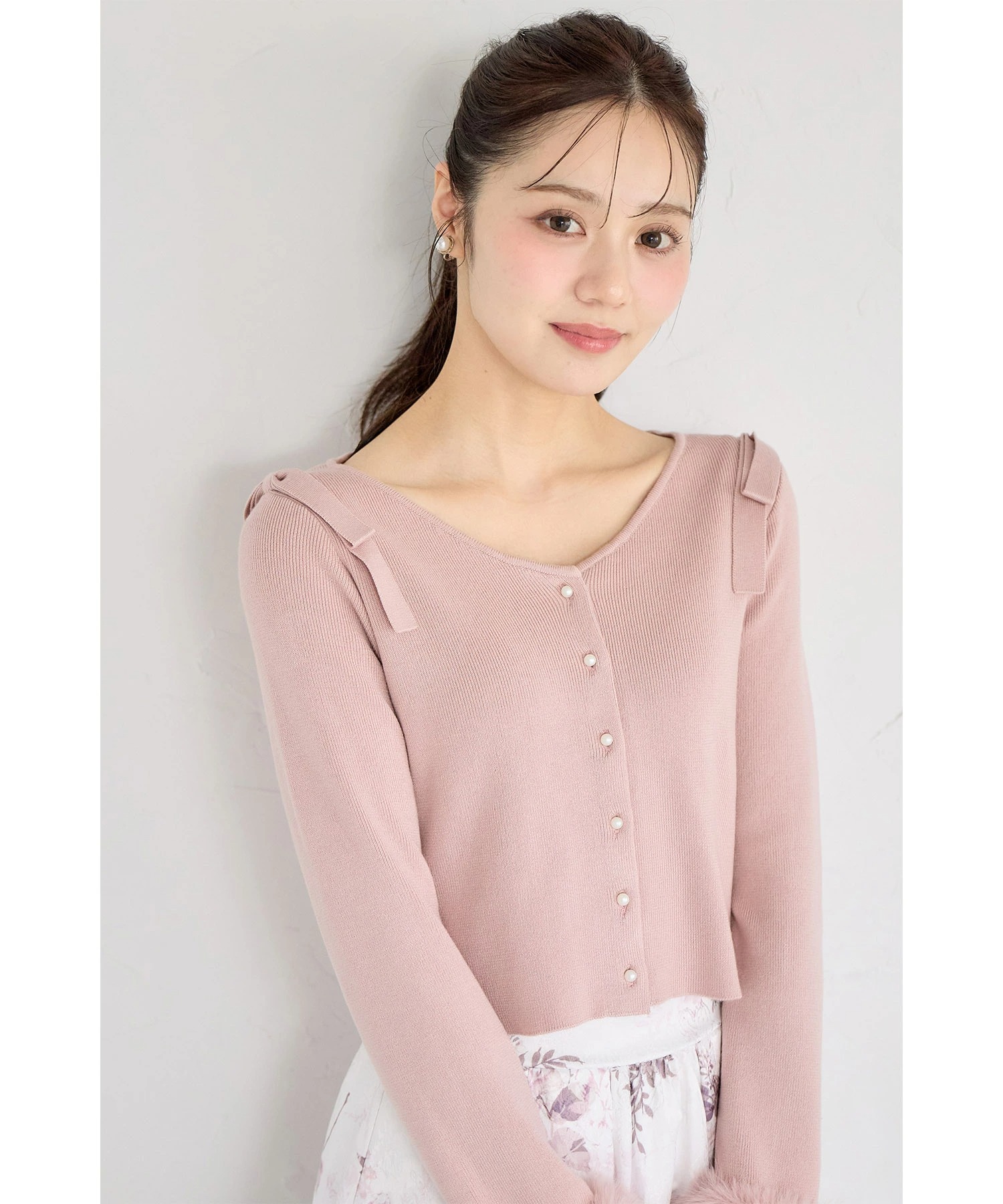 2WAYファー付き肩リボンニットカーディガン tocco c...