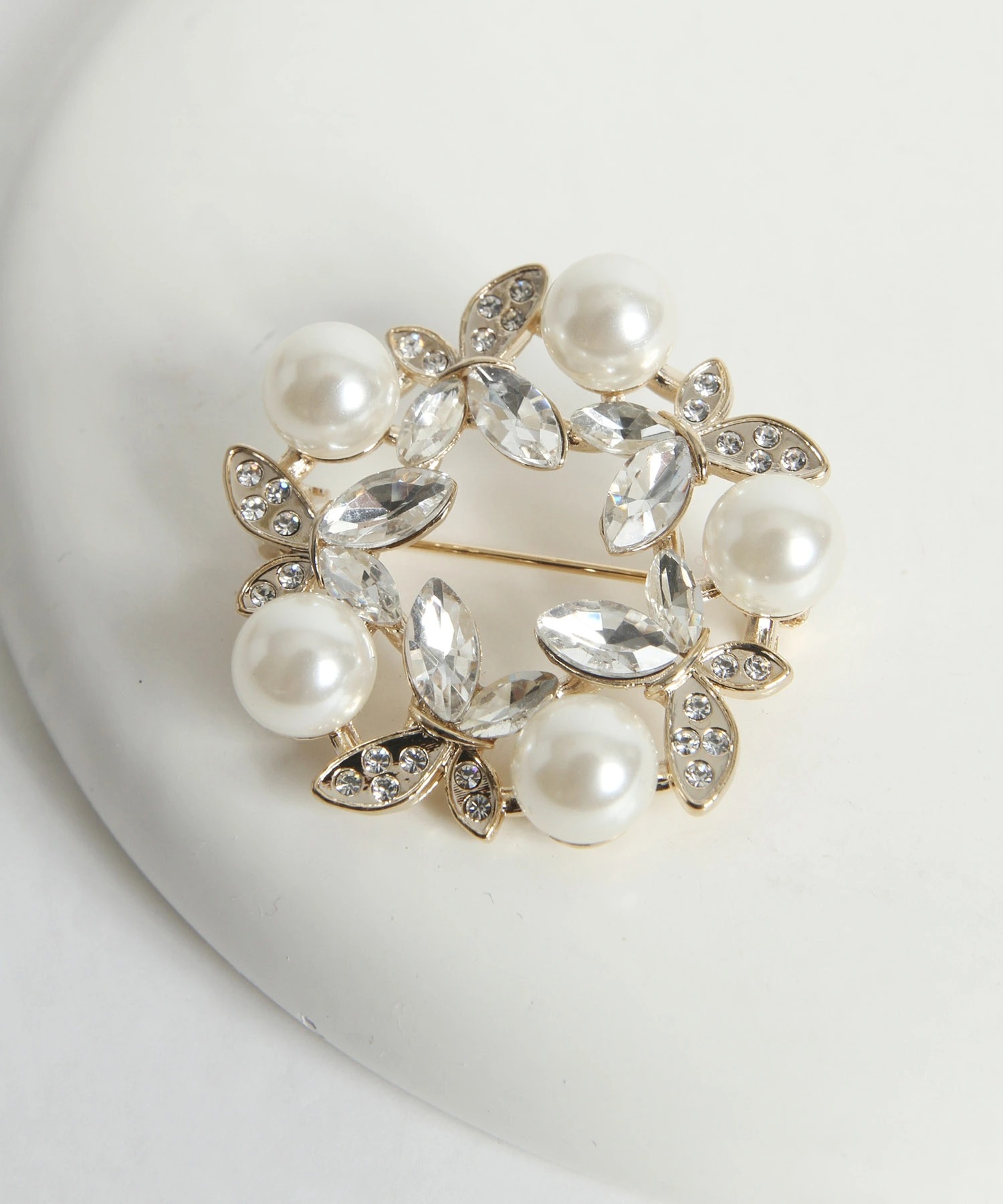 パール×クリアビジューリボンモチーフブローチ tocco c...
